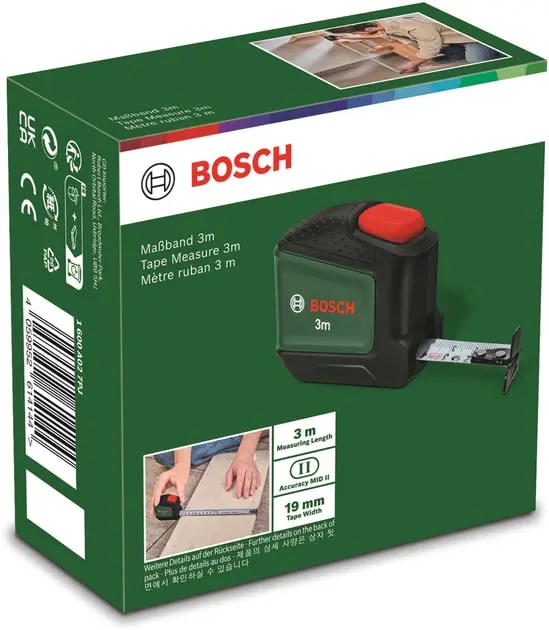 Зносостійка 3-метрова рулетка Bosch із рівнем точності Mid II - це єдиний інструмент, який потрібен для оздоблення, ремонту та різноманітних вимірювальних завдань у побуті. Цей ергономічний інструмент, розроблений для оптимального комфорту та довговічності, має великі зони м'якого захоплення та міцну стрічку завширшки 19 мм.