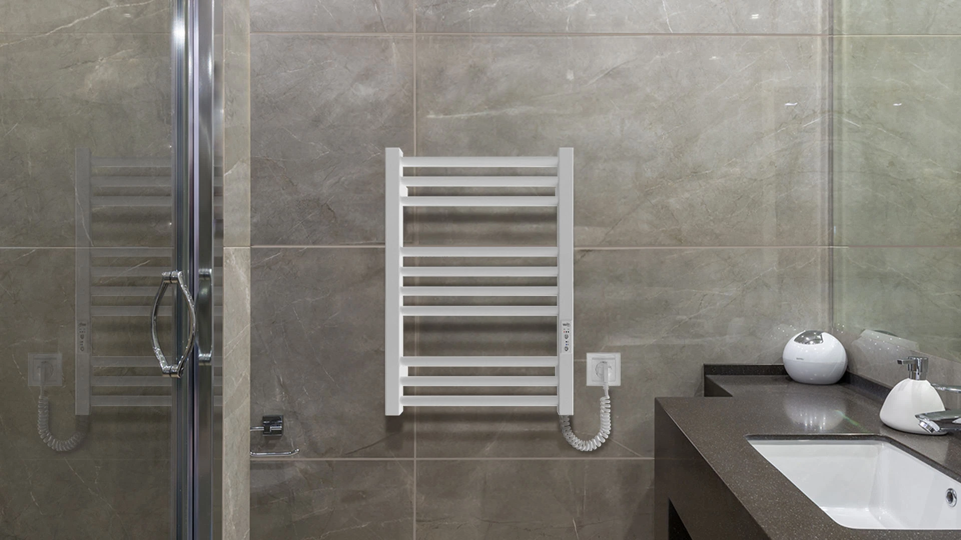 Рушникосушка Hygge Family електрична Derby, 570х430х80мм, таймер-регулятор, сталь, білий матовий