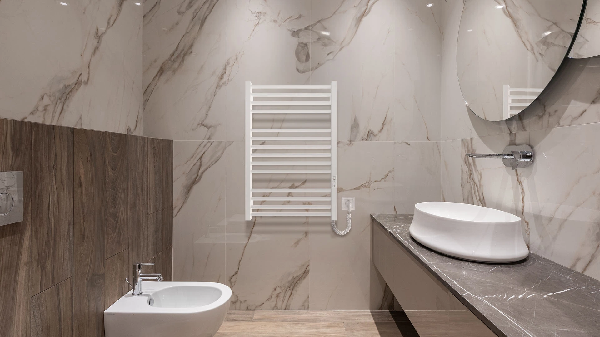 Рушникосушка Hygge Family електрична Derby, 770х530х80мм, таймер-регулятор, сталь, білий матовий