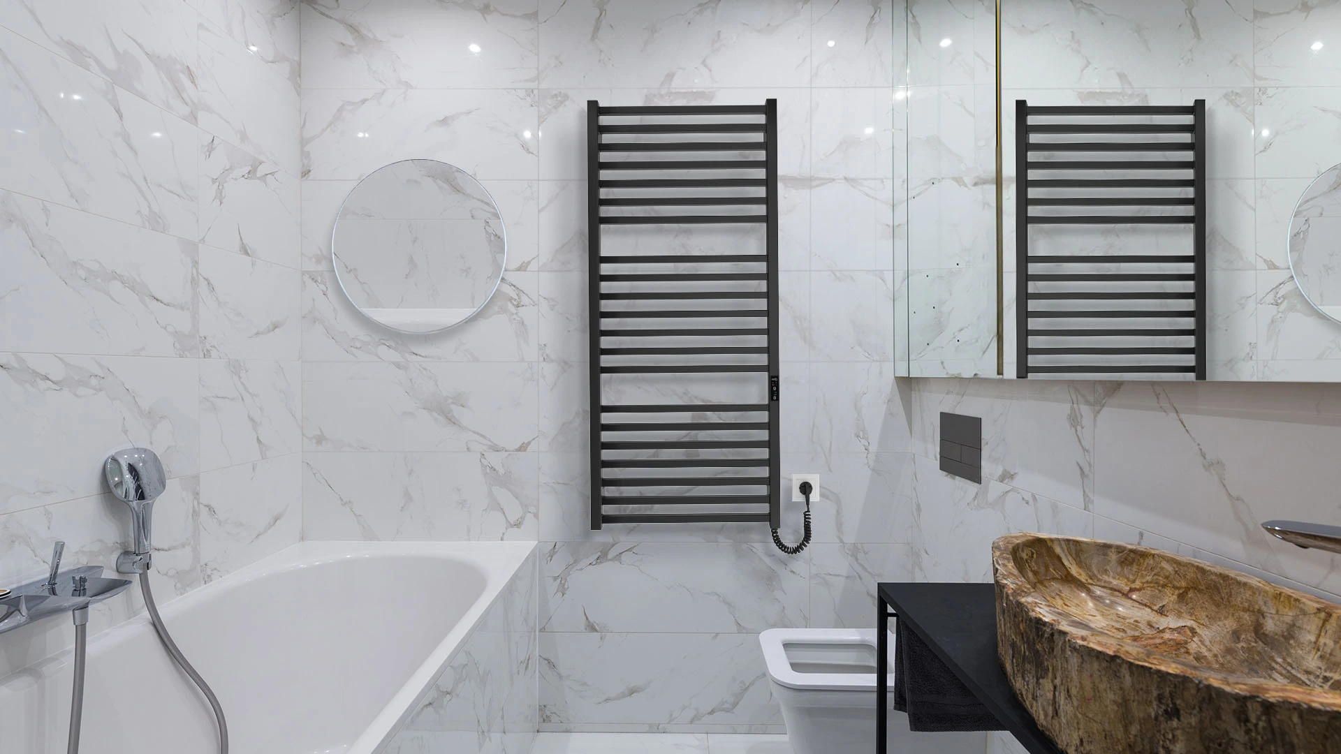 Рушникосушка Hygge Family електрична London, 1170х530х80мм, таймер-регулятор, сталь, чорний матовий