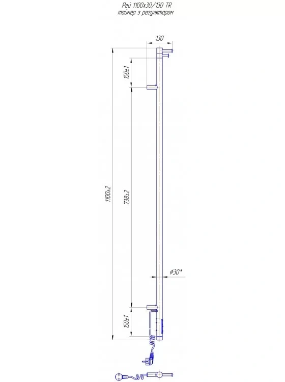 Електросушарка для рушників побутова Рей-I 1100x30/130 TR. Обладнана таймер-регулятором. Сумісна з комплектом прихованого підключення. Має стояк круглої форми.