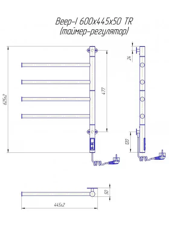 Рушникосушка Mario електрична Веєр-І, 600x445x55мм, таймер-регулятор, нержавійка, хром
