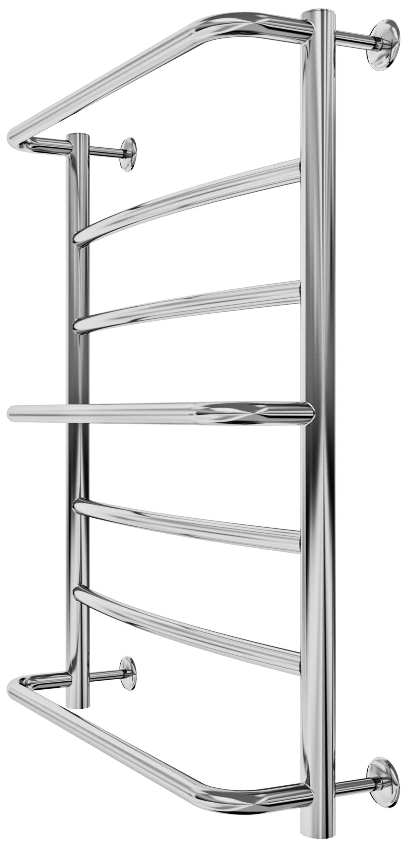 Рушникосушарка "Маріо" Люкс 700х530/500. Розміри: висота - 700 мм, ширина - 430 мм, глибина 170 мм, міжцентрова відстань для підключення - 500 мм, діаметр підключення G1/2''. Варіанти підключення: нижнє, діагональне та бічне. Кількість ребер - 7, стояки з круглої труби. Виготовлена з полірованої нержавіючої сталі без хромування.