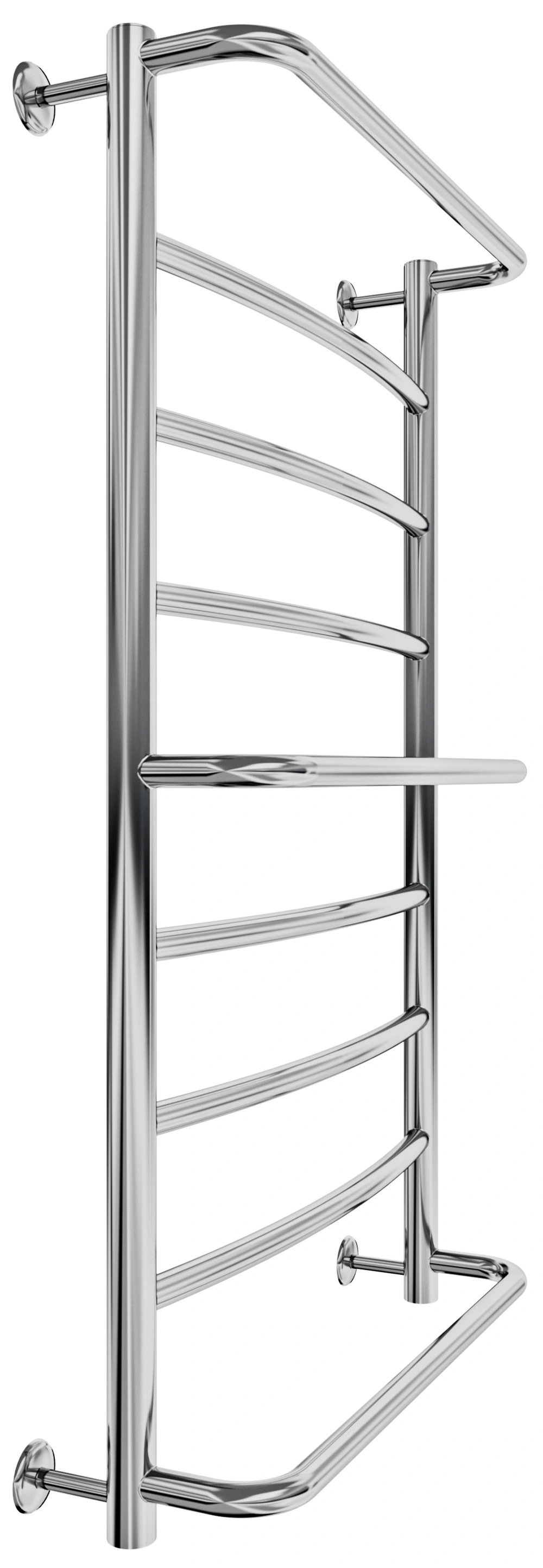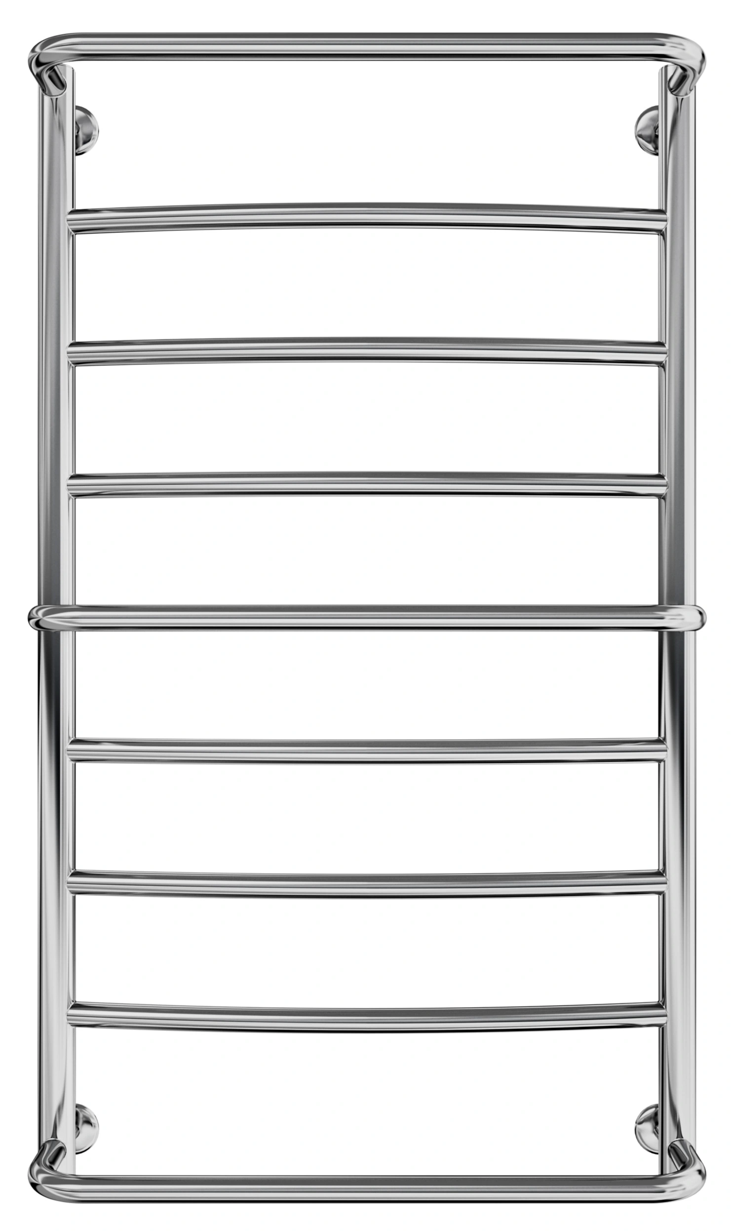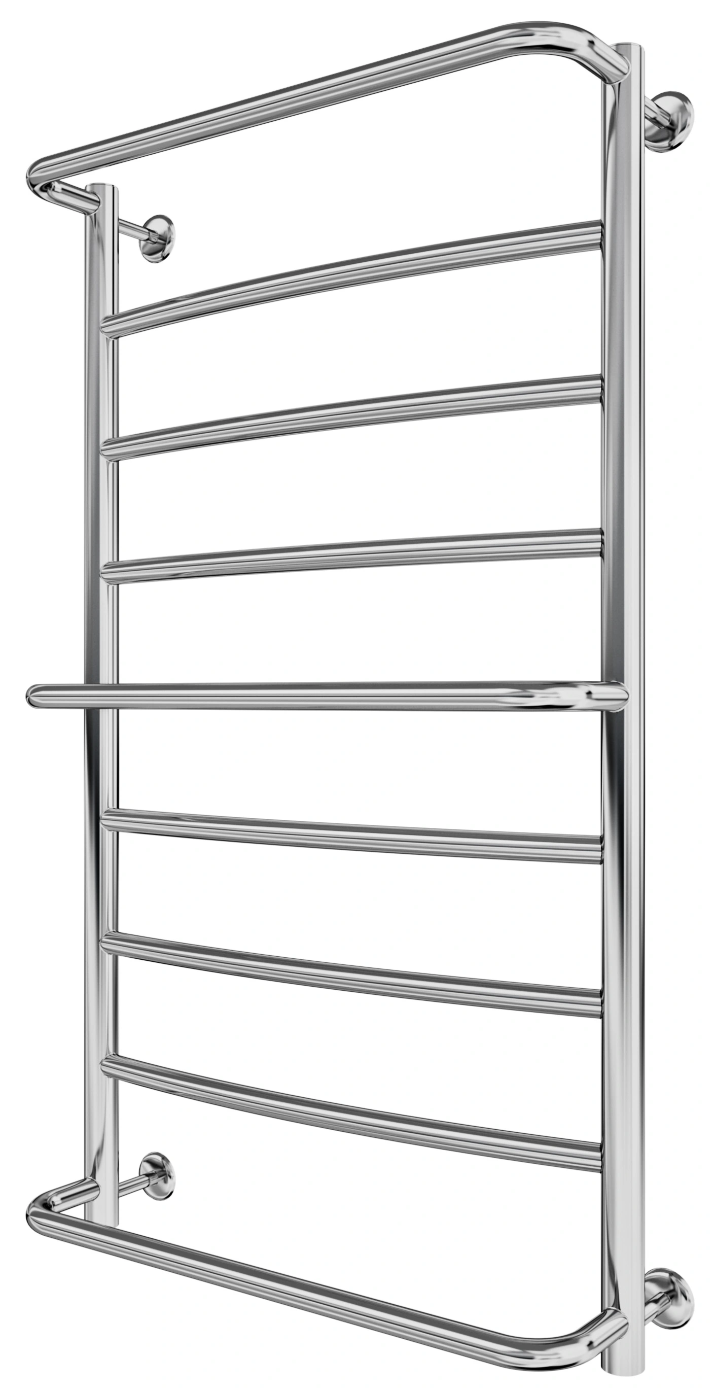 Рушникосушарка "Маріо" Люкс 900х530/500. Розміри: висота - 900 мм, ширина - 530 мм, глибина 170 мм, міжцентрова відстань для підключення - 500 мм, діаметр підключення G1/2''. Варіанти підключення: нижнє, діагональне та бічне. Кількість ребер - 9, стояки з круглої труби. Виготовлена з полірованої нержавіючої сталі без хромування.