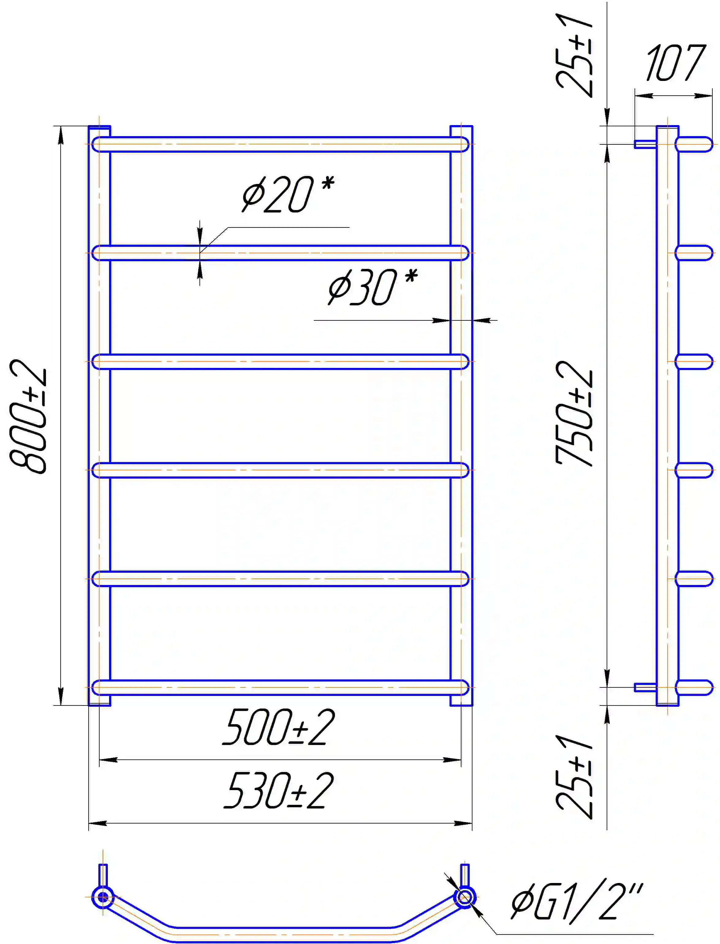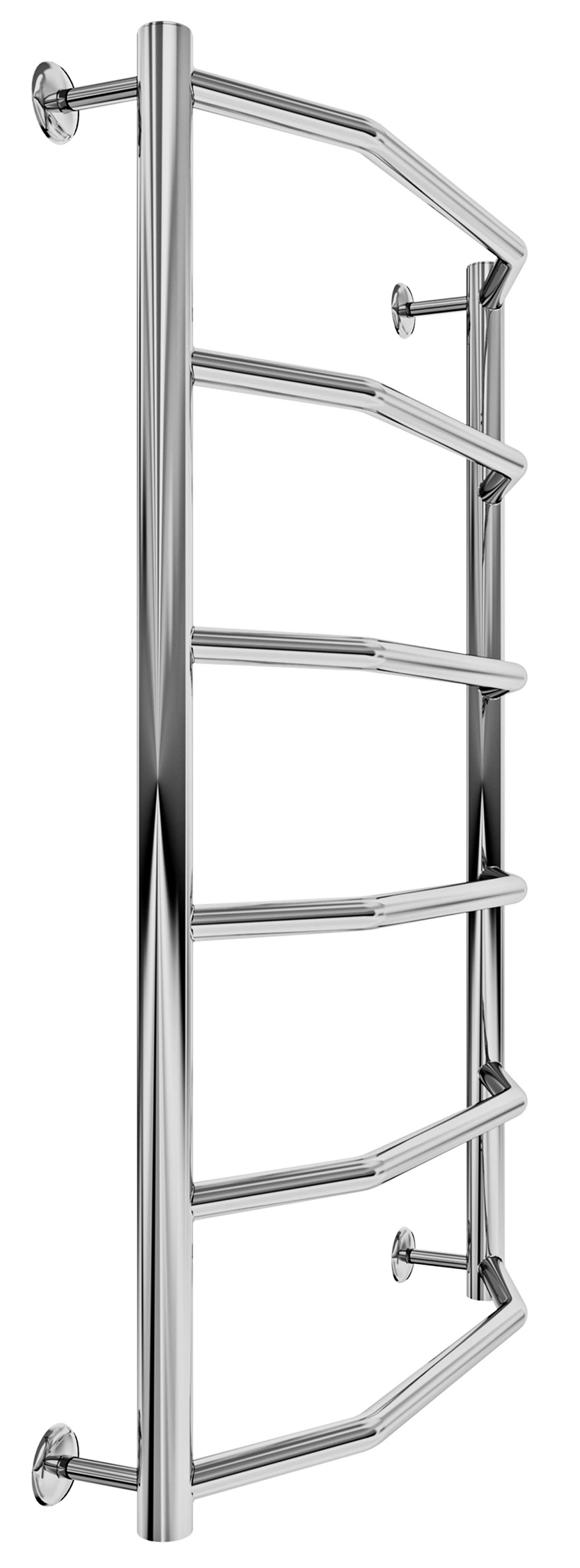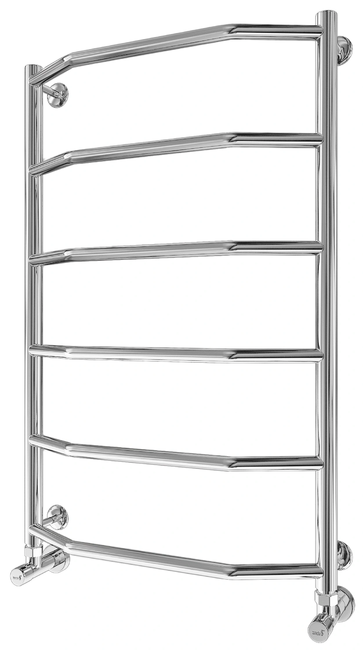 Рушникосушарка "Маріо" Трапеція HP 800х530/500. Розміри: висота - 800 мм, ширина - 530 мм, глибина 130 мм, міжцентрова відстань для підключення - 500 мм, діаметр підключення G1/2''. Приставка HP (Heat Point) - лінійка водяних та електричних рушникосушарок економ-сегменту. Єдиною відмінністю є менша кількість перемичок порівняно з виробами стандартного або преміум сегмента. Варіанти підключення: нижнє, діагональне та бічне. Кількість ребер - 6, стояки з круглої труби. Виготовлена з полірованої нержавіючої сталі без хромування. Варіанти покриття: полірована або сатин, чорний мат, білий глянець, золото, бронза.