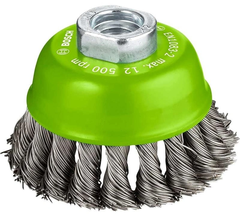 Нержавіюча чашкова щітка Bosch Professional 75 мм з дротом 0.5 мм – ідеальна для очищення металевих поверхонь без ризику іржавіння після обробки.