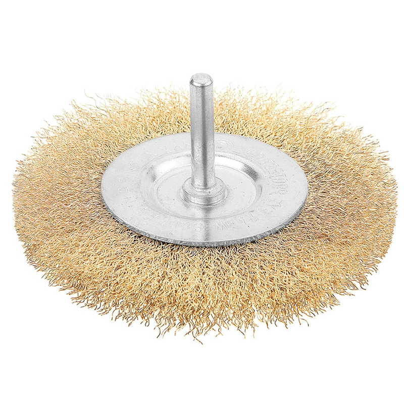 Щітка дискова Tolsen Профі 77540 діаметром 50 мм призначена для м'якого очищення поверхонь. Оснащена сталевим латунованим дротом Ø0,3 мм, що забезпечує делікатне видалення іржі, фарби та лаку. Має хвостовик 6,35 мм (1/4"), що підходить для дрилів і прямих шліфувальних машин. Максимальна швидкість – 4500 об/хв.