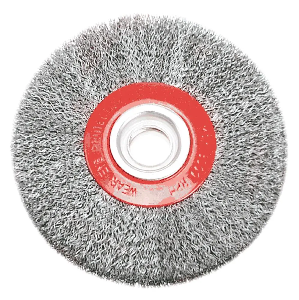 Дротяна щітка VERTO (арт. 62H211) діаметром 150 мм, виготовлена зі сталевого дроту товщиною 0,33 мм. Посилена конструкція кузова дозволяє ефективно очищати металоконструкції. Кріплення адаптоване для використання з настільними шліфувальними машинами. Бренд VERTO пропонує широкий асортимент електроінструментів та аксесуарів для кожного майстра.