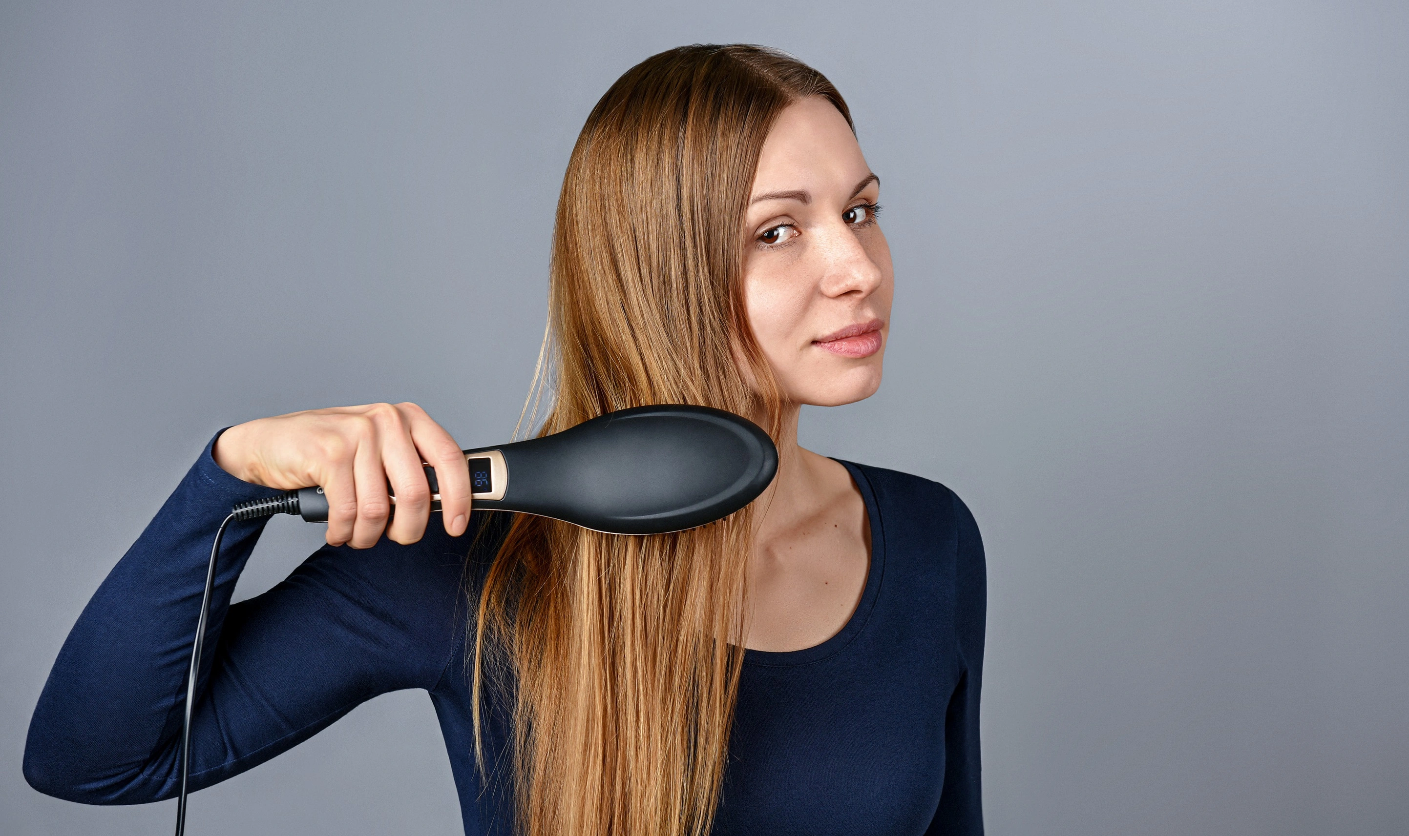 Щітка-випрямляч з керамічним покриттям і регулюванням температури для швидкого випрямлення та створення гладкої зачіски.