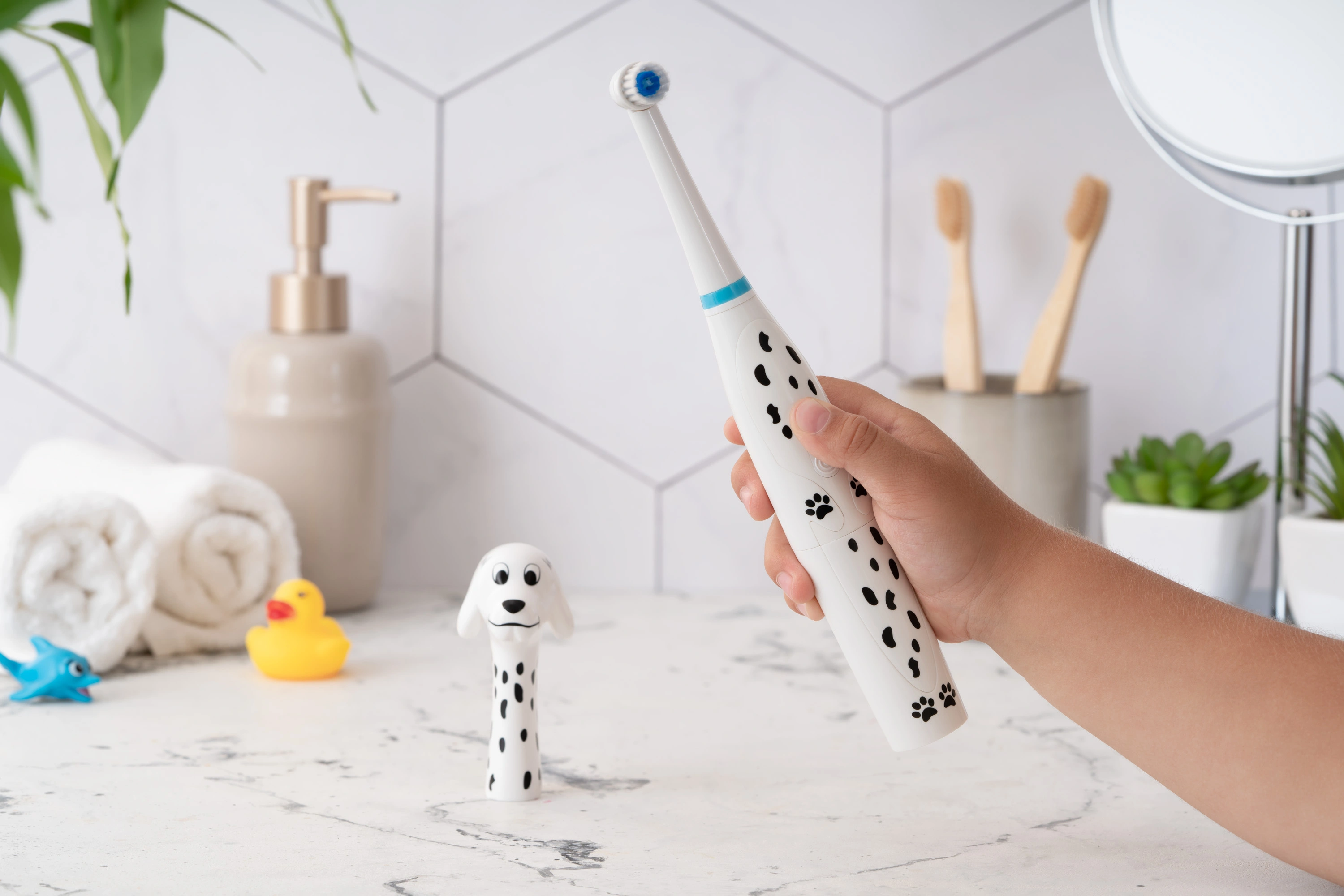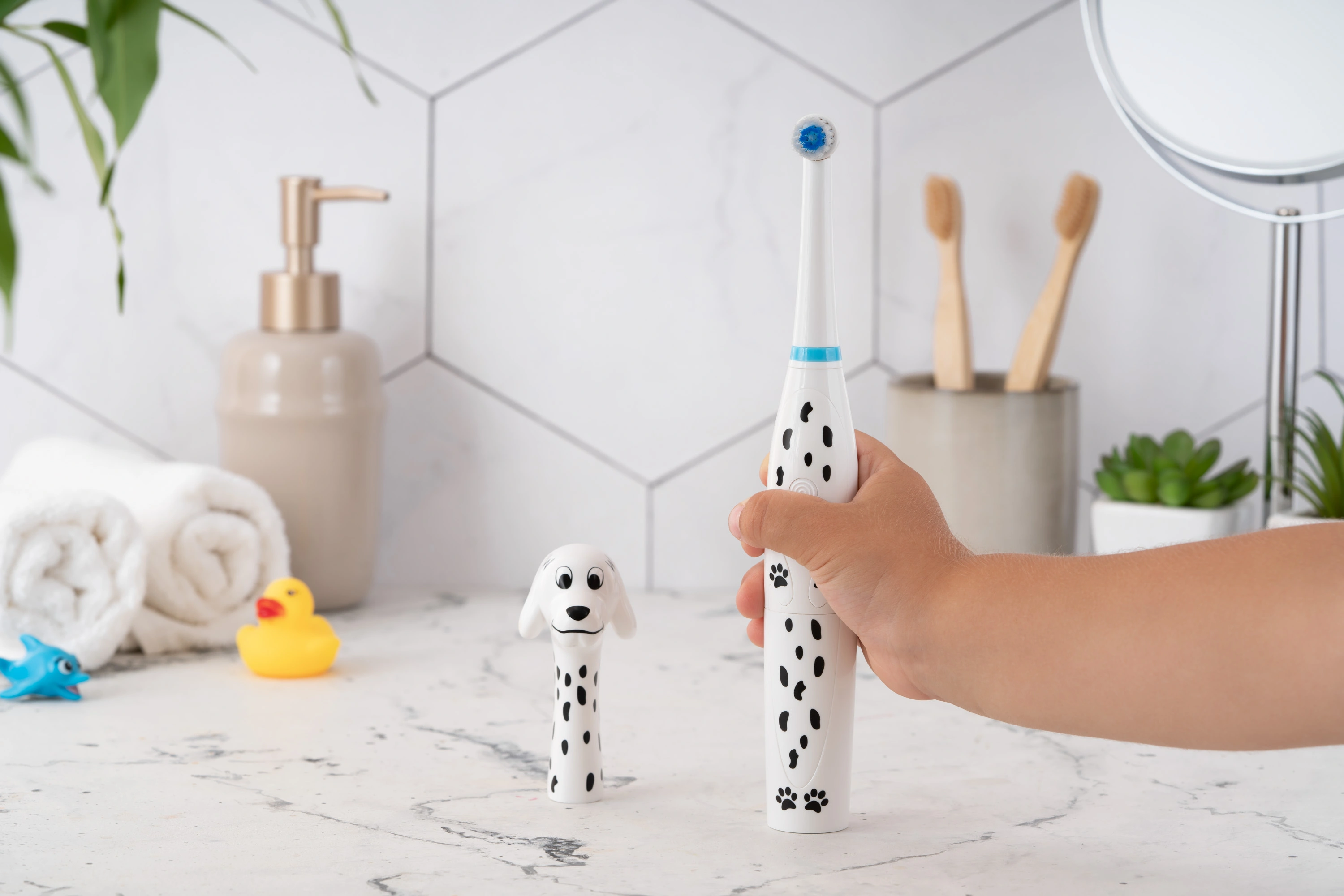 Дитяча електрична зубна щітка ARDESTO ETB-003DOG із унікальним дизайном у вигляді милого песика-далматинця перетворює процес чищення зубів на захопливу гру. М’яка щетина ніжно очистить зуби дитини, забезпечуючи ретельний та бережний догляд. Клас захисту IPX6 – щітку можна мити під струменем води. Працює від двох батарейок стандарту ААА, їх ресурсу вистачить на декілька тижнів безперервної роботи. Для дітей віком від 5 років.