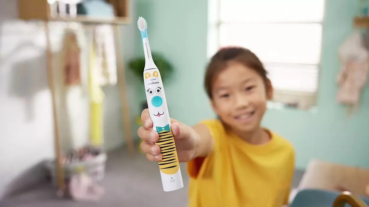 Допомагає запобігти карієсу в дітей. Допоможіть дітям виробити здорові звички чищення зубів за допомогою електричної зубної щітки Sonicare for Kids. Ця щітка дбайливо доглядає за зубами та яснами, що ростуть, і допомагає запобігти карієсу. Спеціальна версія щітки «Створіть власного домашнього улюбленця» має в комплекті веселі наклейки, щоб діти могли прикрасити її на свій смак. Технологія Sonicare допомагає запобігти карієсу. Лагідні імпульси глибоко проникають між зубами та вздовж лінії ясен. Тож поки діти ще вчаться чистити зуби, ефективність чищення не знижуватиметься.