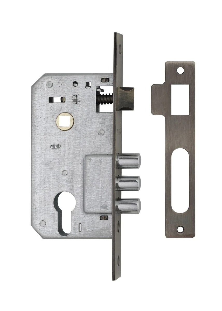 SIBA 10038/M в отделке «Античная бронза» — прочный и надёжный врезной замок с тремя ригелями, который обеспечивает стабильную работу, долговечность и привлекательный внешний вид.