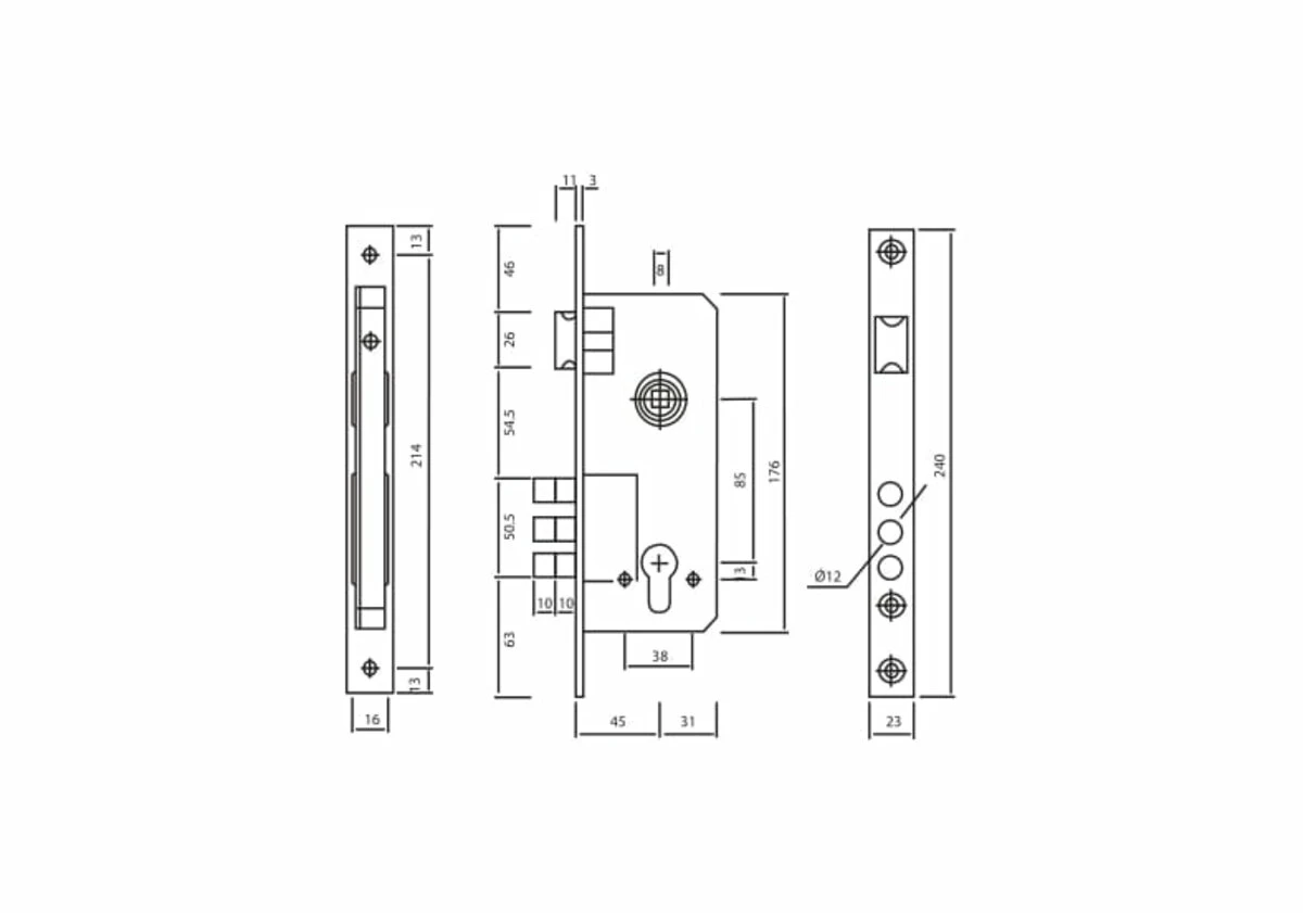 - Размер 85/45 мм — универсальное решение для стандартных дверей.
