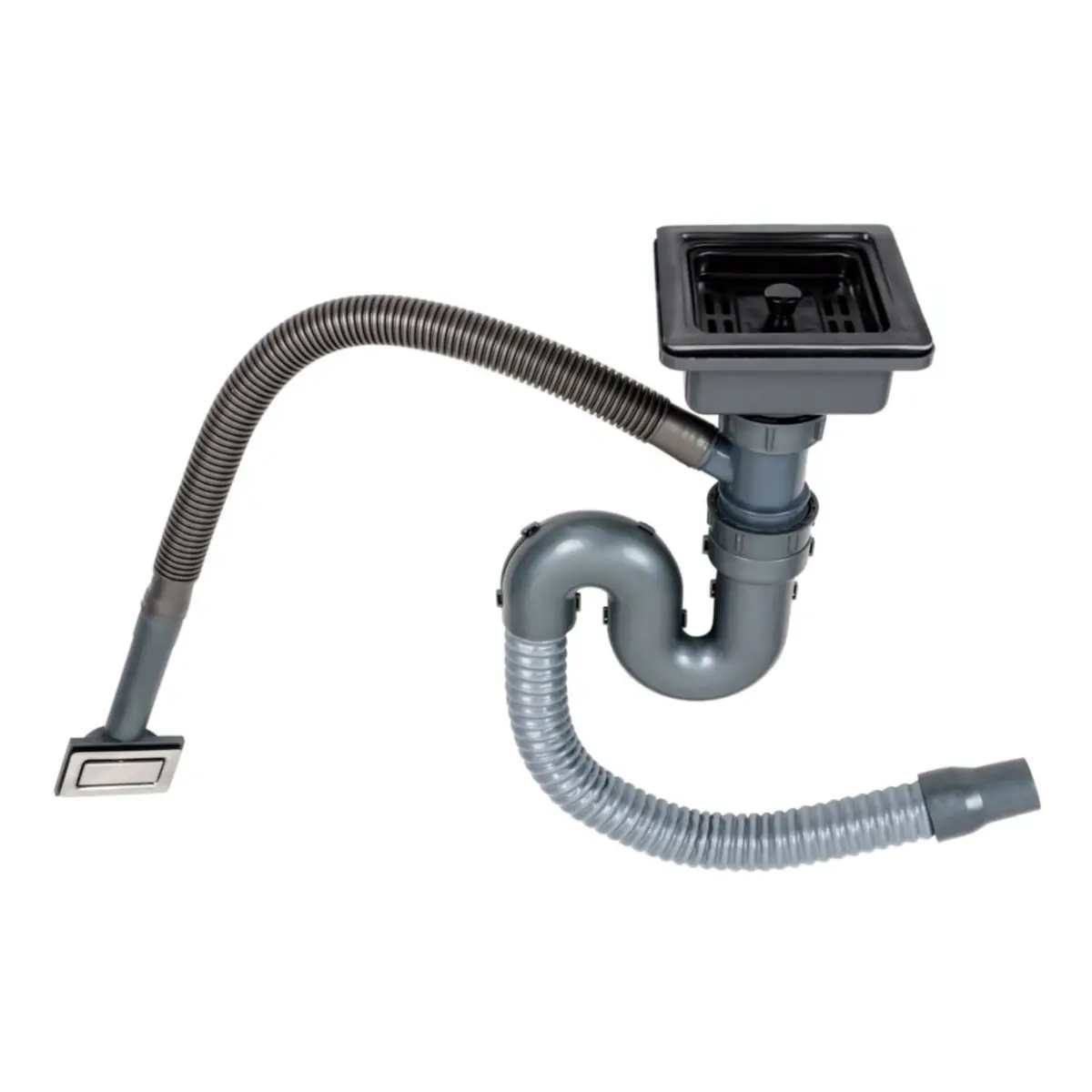 Сифон одинарний для мийок HandmadePVD чорних (квадратний сифон,квадратний перелив)