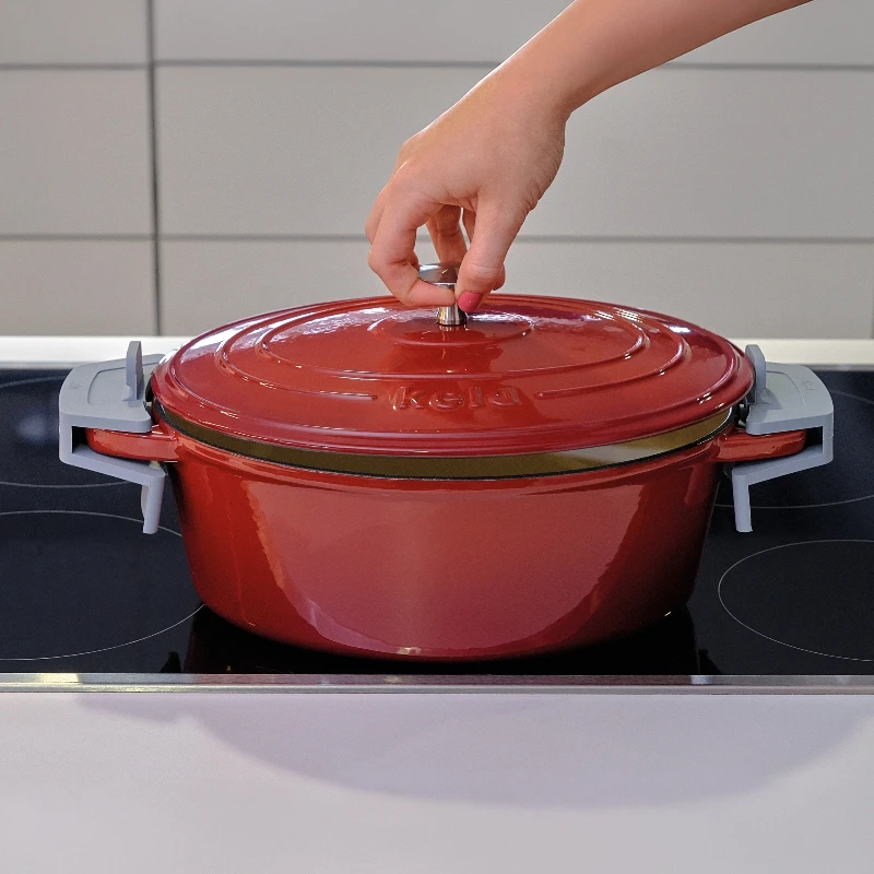 - Накладка на ручку каструлі KELA Cali має ергономічну форму, яка ідеально підходить для руки та забезпечує надійний захист рук від гарячого посуду.