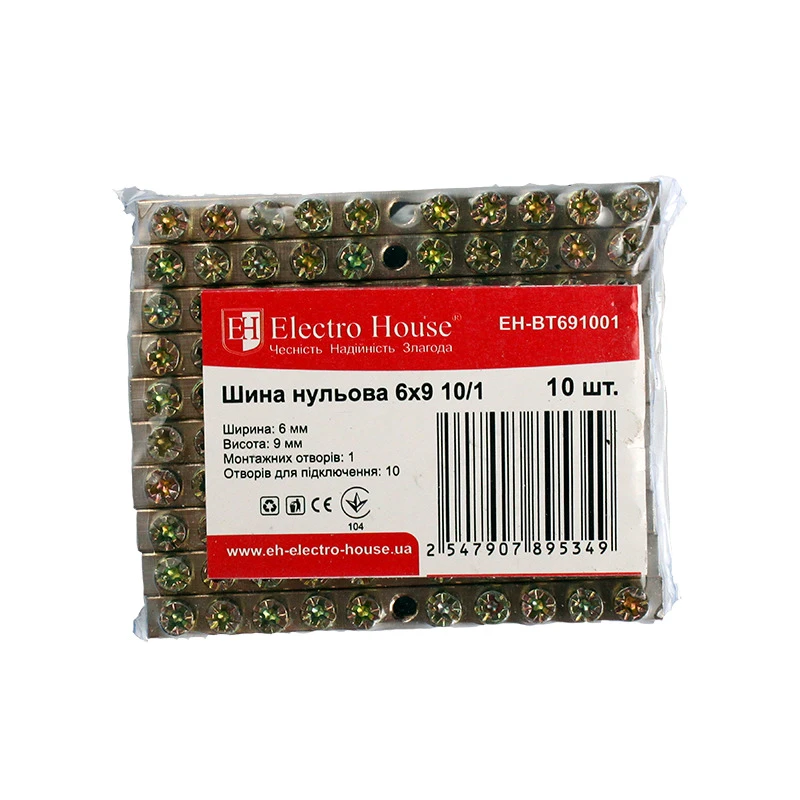 Шина нулевая 6х9 мм² 10/1, 1 отверстие
