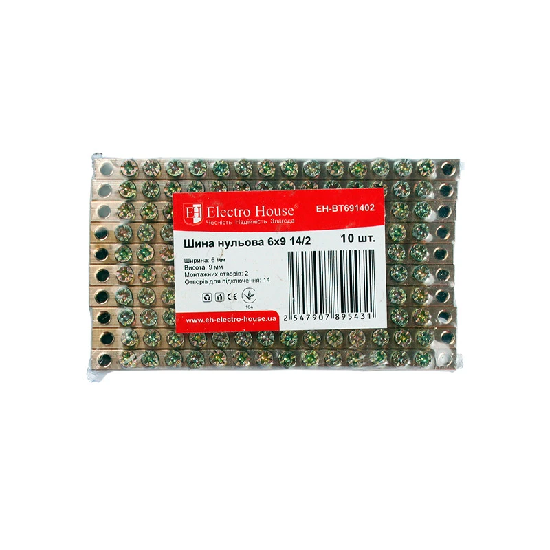 Шина нулевая 6х9 мм² 14/2, 2 отверстия