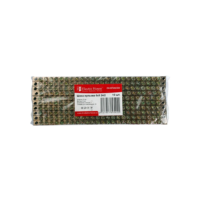 Шина нулевая 6х9 мм² 24/2, 2 отверстия EH-BT692402 от ElectroSpace — высококачественное изделие, значительно облегчающее работу электриков и повышающее безопасность электросетей. Ее использование является незаменимым при сборке электрощитов, поскольку она обеспечивает надежное электрическое и механическое соединение нулевых, защитных и фазных проводников. Благодаря конструкции и компактным размерам (6х9 мм²), шина легко интегрируется в любую систему. Шина нулевая изготовлена из латуни, что обеспечивает отличную электропроводность и устойчивость к износу. Рабочие характеристики позволяют использовать шину в условиях высоких нагрузок (номинальный ток – 100A, напряжение – до 400 В) и широкого температурного диапазона –40…+50°С. Ее монтаж осуществляется винтовым методом, обеспечивающим надежное соединение проводников сечением – 1,5-10 мм². Шина разработана для удобства и эффективности: вместо установки отдельных нулевых шин к каждому устройству, она позволяет подключить общий нулевой провод и развести его к разным компонентам электрощита. Такой подход повышает общую надежность и упрощает обслуживание. Продукция ElectroSpace соответствует международным стандартам качества, что гарантирует долговечность и безотказную работу. ВыбирайтеШина нулевая 6х9 мм² 24 /2, 2 отверстия, чтобы оптимизировать монтаж электрощитов и создать надежную и безопасную систему электроснабжения.