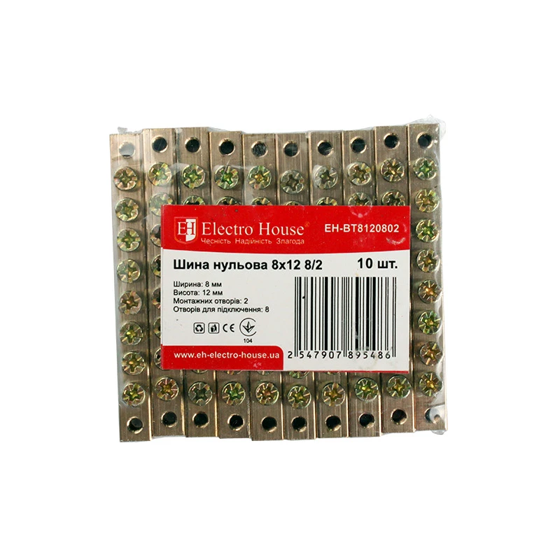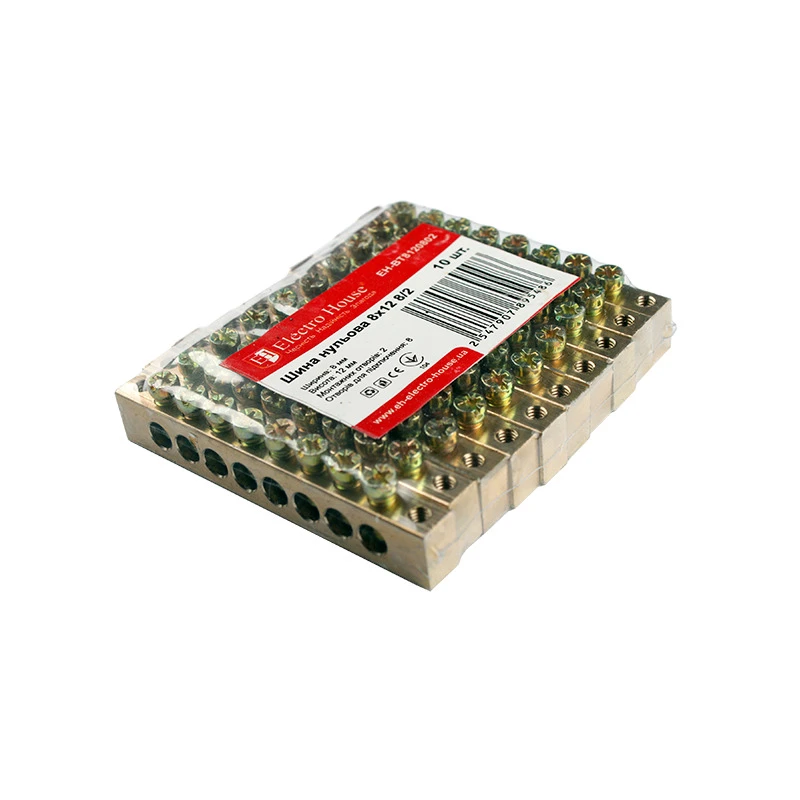 Шина нулевая 8х12 мм² 8/2, 2 отверстия