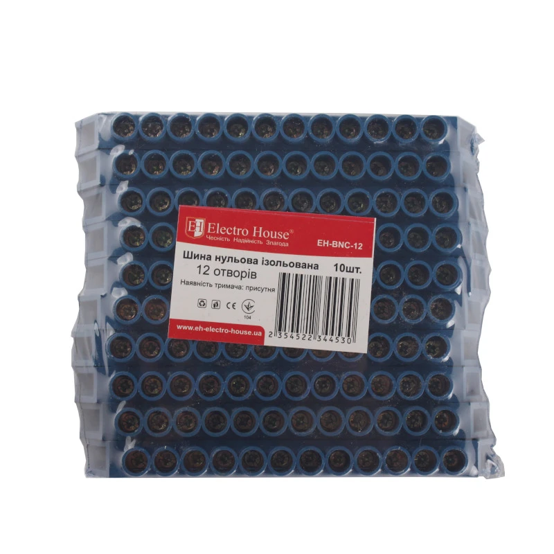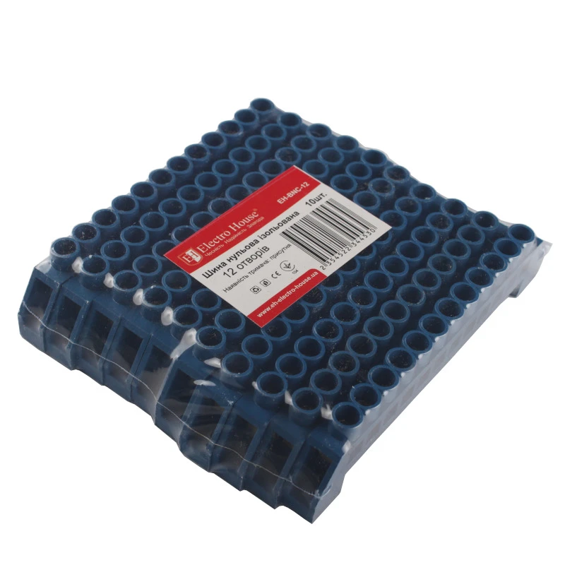 Шина нулевая изолированная, 12 отверстий EH-BNC-12 от ElectroSpace - это надежное и удобное устройство, предназначенное для электрического и механического соединения нулевых, защитных и фазных проводников. Она изготовлена из высококачественных материалов, соответствует мировым и европейским стандартам, обеспечивая длительную и безопасную эксплуатацию. <Эта модель имеет изоляционный корпус из самозатухающего пластика, что повышает безопасность при работе. Токопроводящая жила изготовлена из электротехнической латуни, известной своей высокой электропроводностью и долговечностью. Шина оснащена 12 кабельными выводами диаметром 5,5 мм с зажимными винтами, обеспечивающими надежное крепление проводников. Компактные размеры позволяют использовать устройство в любых электрощитах.