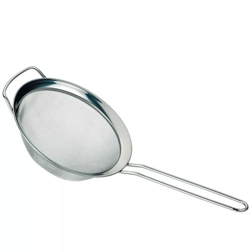 Сито KELA Profi можна сміливо назвати універсальним виробом. За номенклатурою це звичайно ж сито, але фактично його можна використовувати ще і як друшляк, і як шумівку для великих каструль (діаметр сита цілком дозволяє). Тому через сито KELA Profi можна просівати борошно, проціджувати рідкі продукти або зціджувати воду після митися грибів чи ягід, можна навіть виловлювати галушки або вареники, якщо вони варяться у великій ємності. Виготовлено сито KELA Profi з найкращої харчової нержавіючої сталі марки 18/10. Це міцний сучасний матеріал, зовсім не схильний до окислення, навіть під впливом гарячої води, солі або харчових кислот. У сита дві ручки у формі петлі: одна довга основна, друга коротка допоміжна для зручнішого використання, коли виникає необхідність закріпити сито над мискою або каструлею, або ж притримати другою рукою.