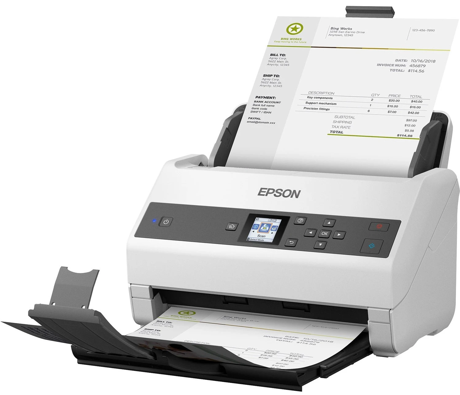 Epson WorkForce DS-870 - це компактний потоковий сканер з високою швидкістю сканування і високим навантаженням для середніх і великих робочих груп. Epson WorkForce DS-870 - потоковий формату А4 з автоподавачем документів. Швидкість сканування становить 65 стор./хв в односторонньому режимі і 130 зобр./хв при двосторонньому скануванні. DS-870 підтримує сканування довгих документів. Максимальна довжина становить більше 6м (6096 мм). Epson WorkForce DS-870 дозволяє сканувати в такі формати як: JPEG, TIFF, multi-TIFF, PDF, searchable PDF, secure PDF, PDF/A.