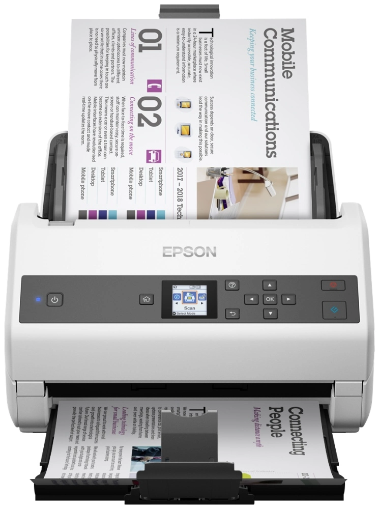 Epson WorkForce DS-970 - це компактний потоковий сканер з високою швидкістю сканування і високим навантаженням для великих робочих груп. Epson WorkForce DS-970 - потоковий формату А4 з автоподавачем документів. Швидкість сканування становить 85 стор./хв в односторонньому режимі і 170 зобр./хв при двосторонньому скануванні. DS-970 підтримує сканування довгих документів. Максимальна довжина становить більше 6 м (6096 мм). Epson WorkForce DS-970 дозволяє сканувати в такі формати як: JPEG, TIFF, multi-TIFF, PDF, searchable PDF, secure PDF, PDF/A.