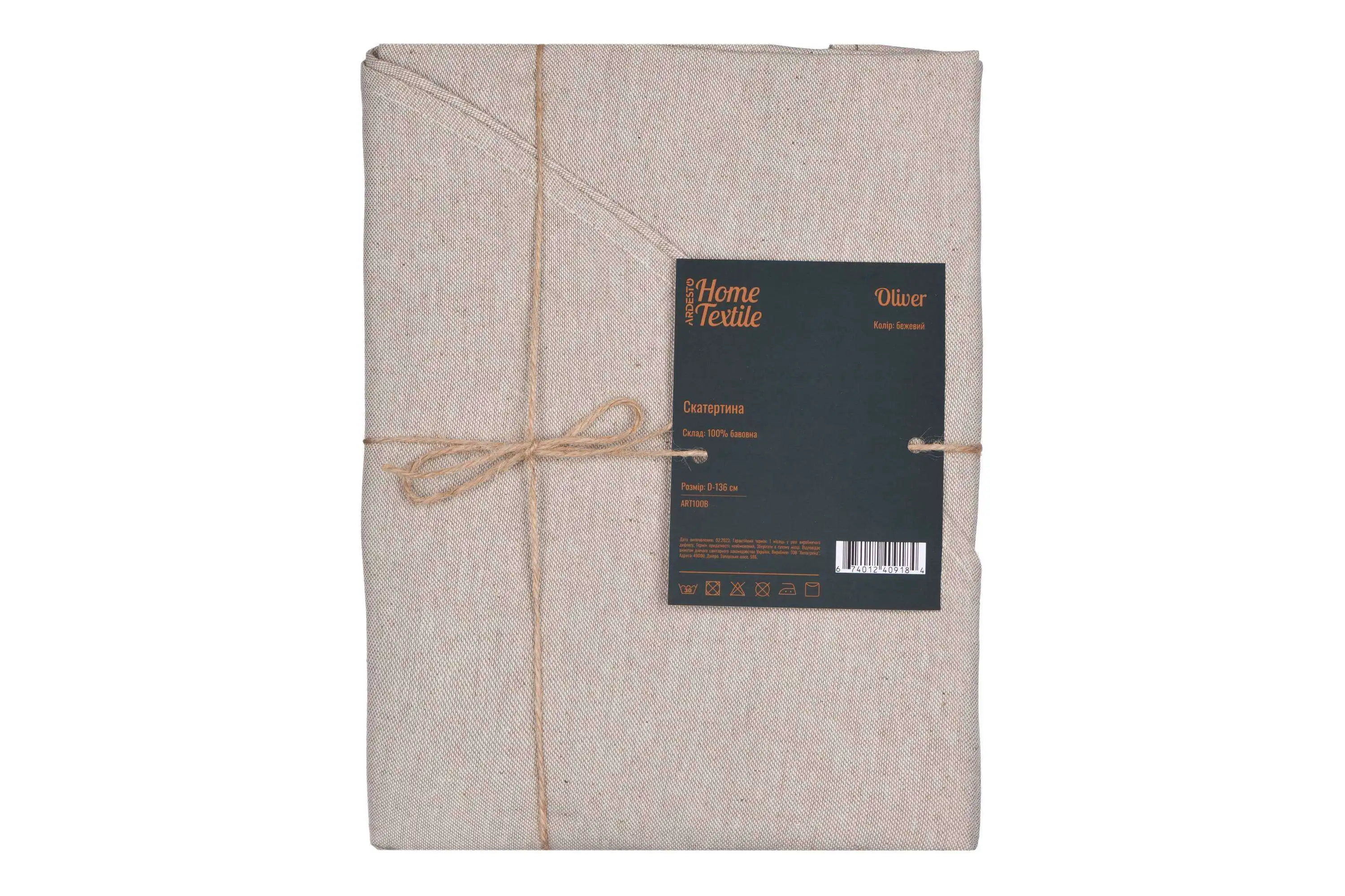 Скатертина Ardesto Oliver, 136см, 100% бавовна, бежевий