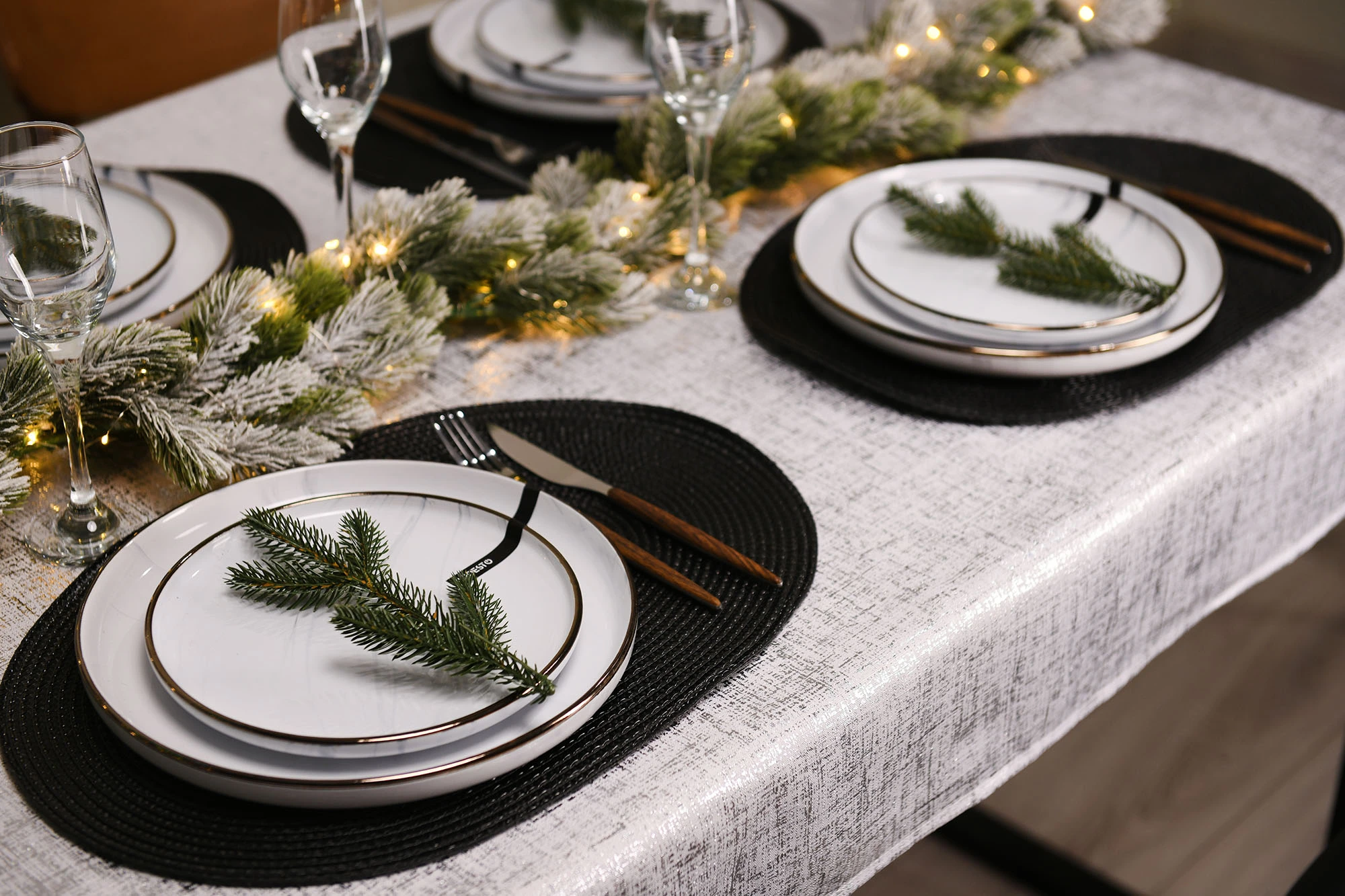 Скатертина ARDESTO Shine додасть затишку та створить атмосферу свята. Практичний виріб надійно захистить стіл від різноманітного забруднення. Виготовлено скатертину зі 100 % поліестеру, забезпечуючи довговічність використання. Розмір скатертини сріблястого кольору становить 120 × 140 см. Під час догляду виріб не мнеться та не сідає, а дотримання нескладних правил збереже надовго гарний вигляд: прання в пральній машині за 30 °C на делікатному режимі; сушіння в машині за низької температури; заборона відбілювання; заборона чищення будь-яким розчинником, крім трихлоретилену; прасування за температури до 110 °C.