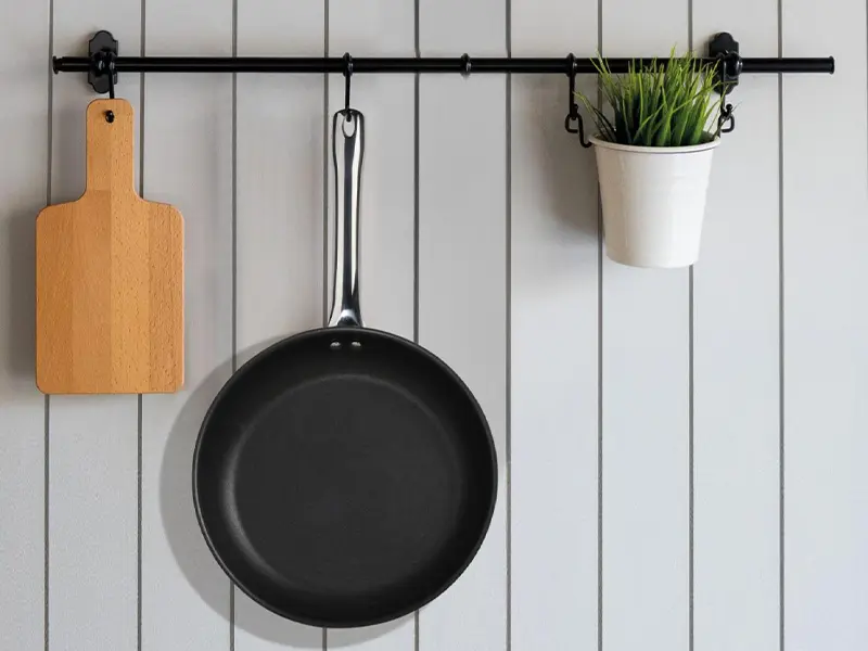 Довга ручка з відверненням може бути вам дуже зручною! Ви можете повісити сковороду на стіну і таким чином зробити кухню затишною та чистою. Більш того, в цей отвір можна покласти ложку, вкриту соусом, яку ви використовуєте. Замість того, щоб забруднити іншу тарілку чи капати на стіл, ложка просто капає назад у те, що ви готуєте.
