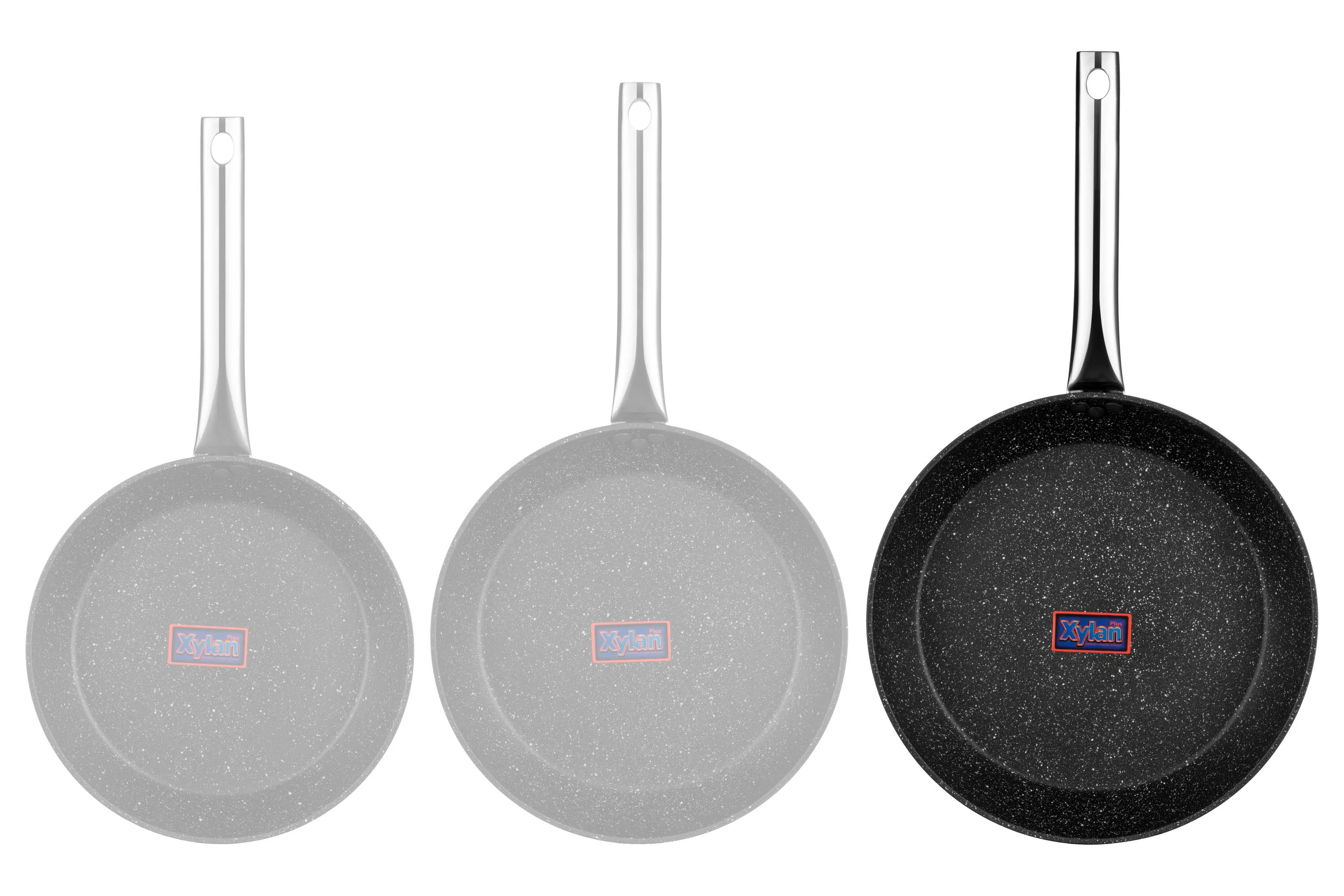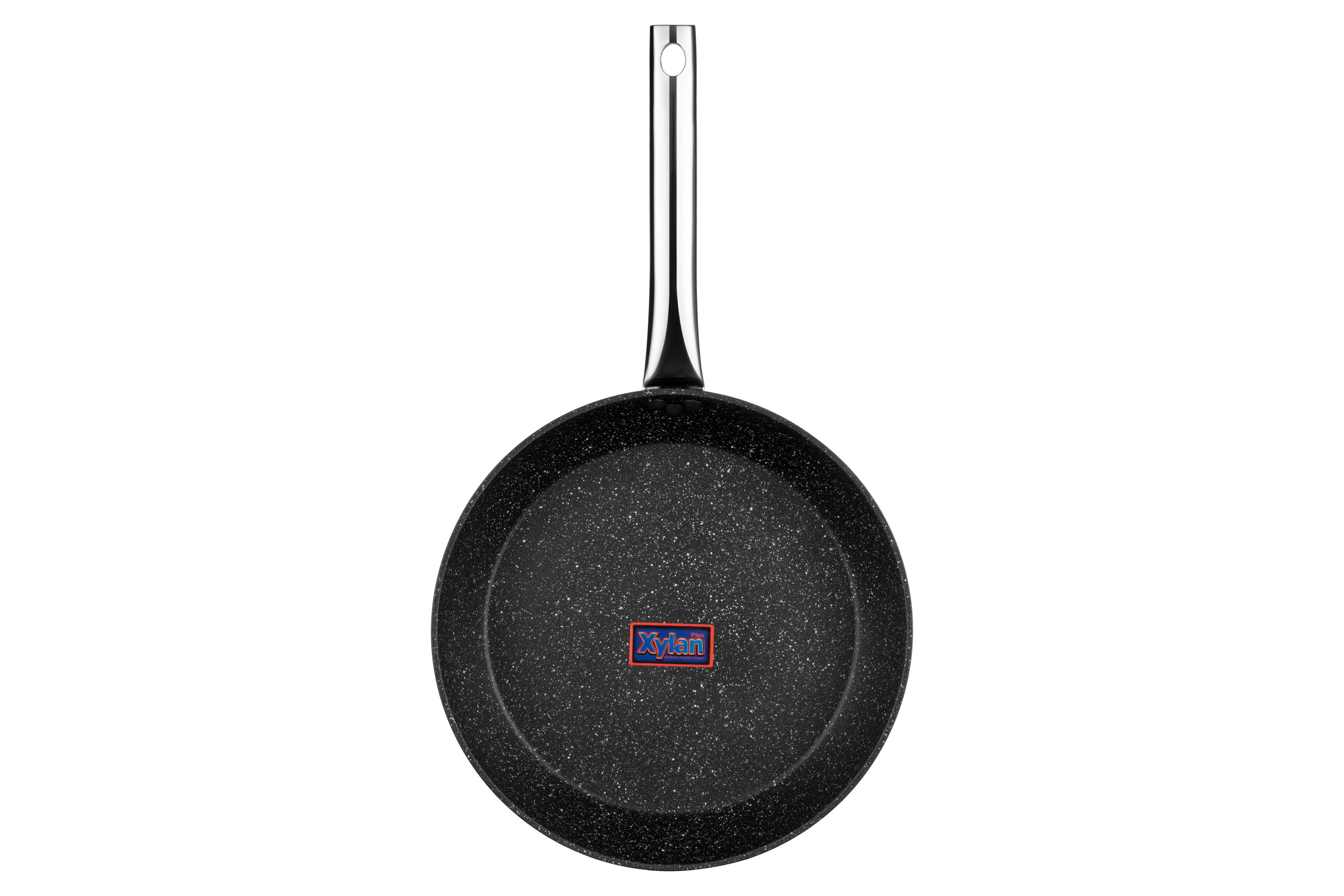 Сковорода діаметром 28 см вирізняється універсальністю, адже придатна до використання чи не на всіх видах плит, зокрема: газових, галогенних, індукційних, склокерамічних та індукційних. Виготовлена з кованого алюмінію, модель заввишки 5 см має товщину стінок 2,6/4 мм, а дна – 2,6 мм. Конструкцією передбачено міцне руків’я з нержавіючої сталі, на внутрішню поверхню нанесено протипригарне покриття Xylan Plus. Сковорода легка щодо догляду, допустимо мити в посудомийній машині.