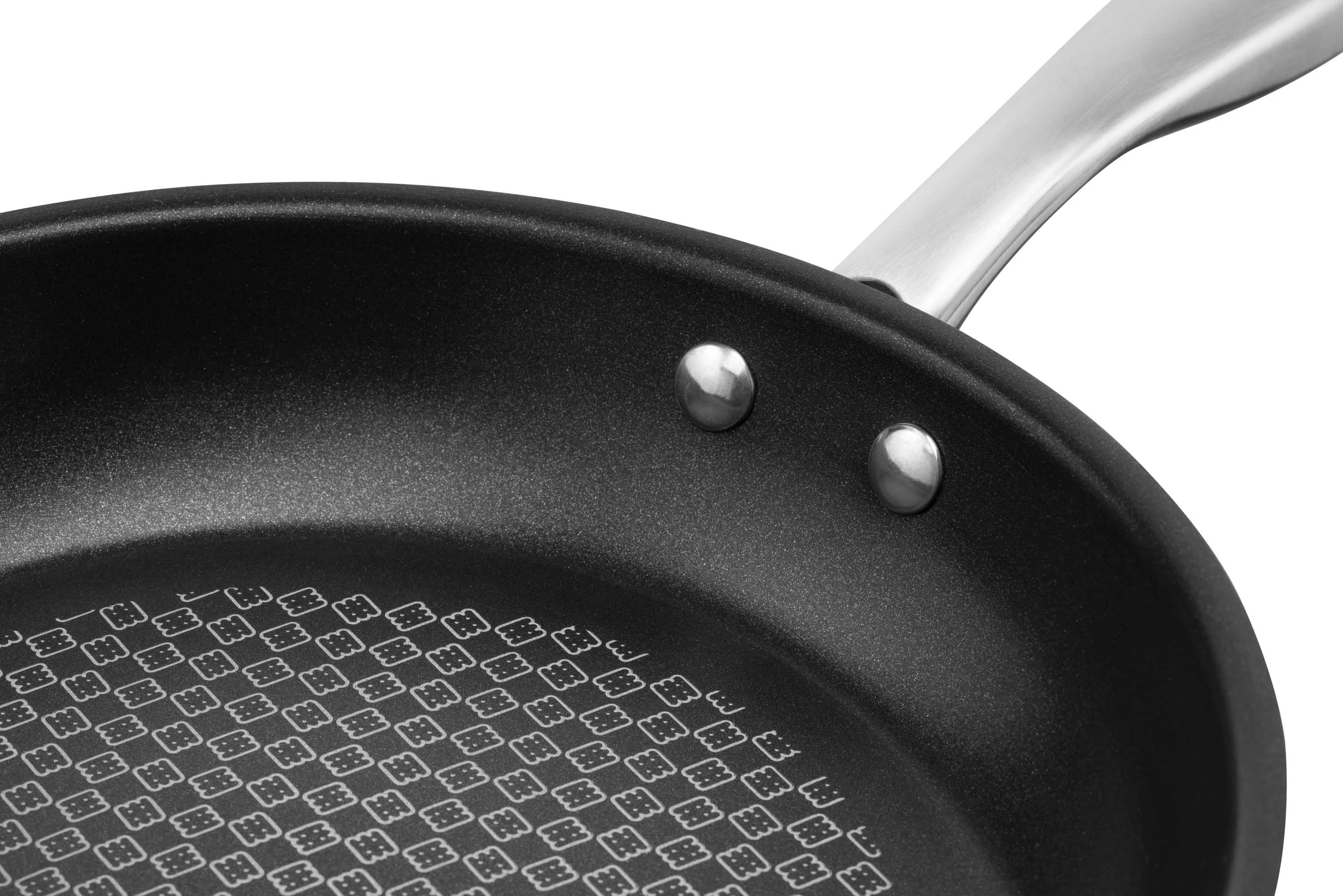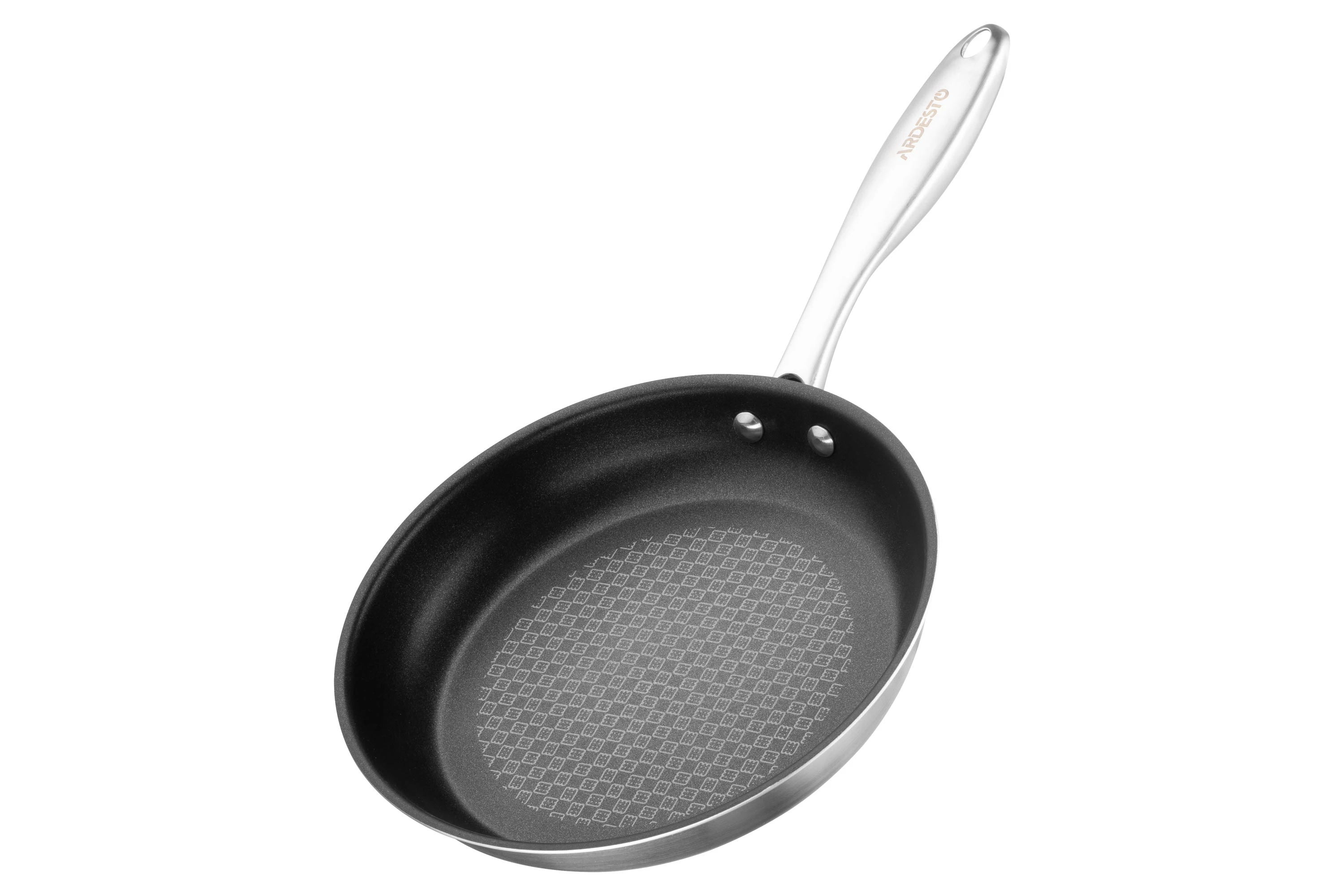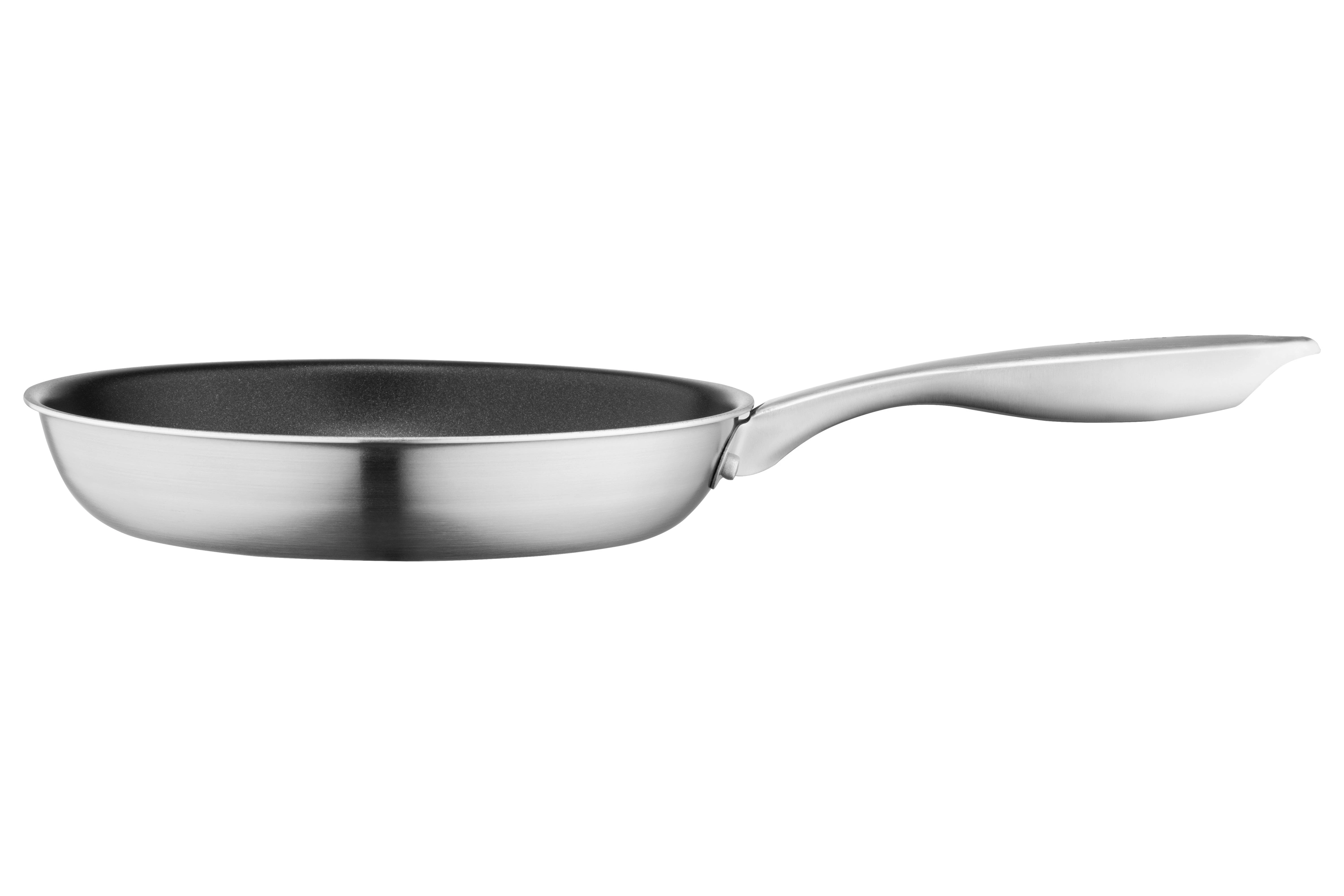 Сковорода з нержавіючої сталі має протипригарне покриттям чорного кольору із захисною насічкою. Діаметр моделі складає 24 см. За висоти 4,5 см сковорода має однакову товщину бічних стінок і дна – 2 мм. Універсальність моделі зумовлена широкою сумісністю з різними видами плит: газовими, електричними, склокерамічними, індукційними й галогенними. До того ж її можна мити в посудомийній машині.