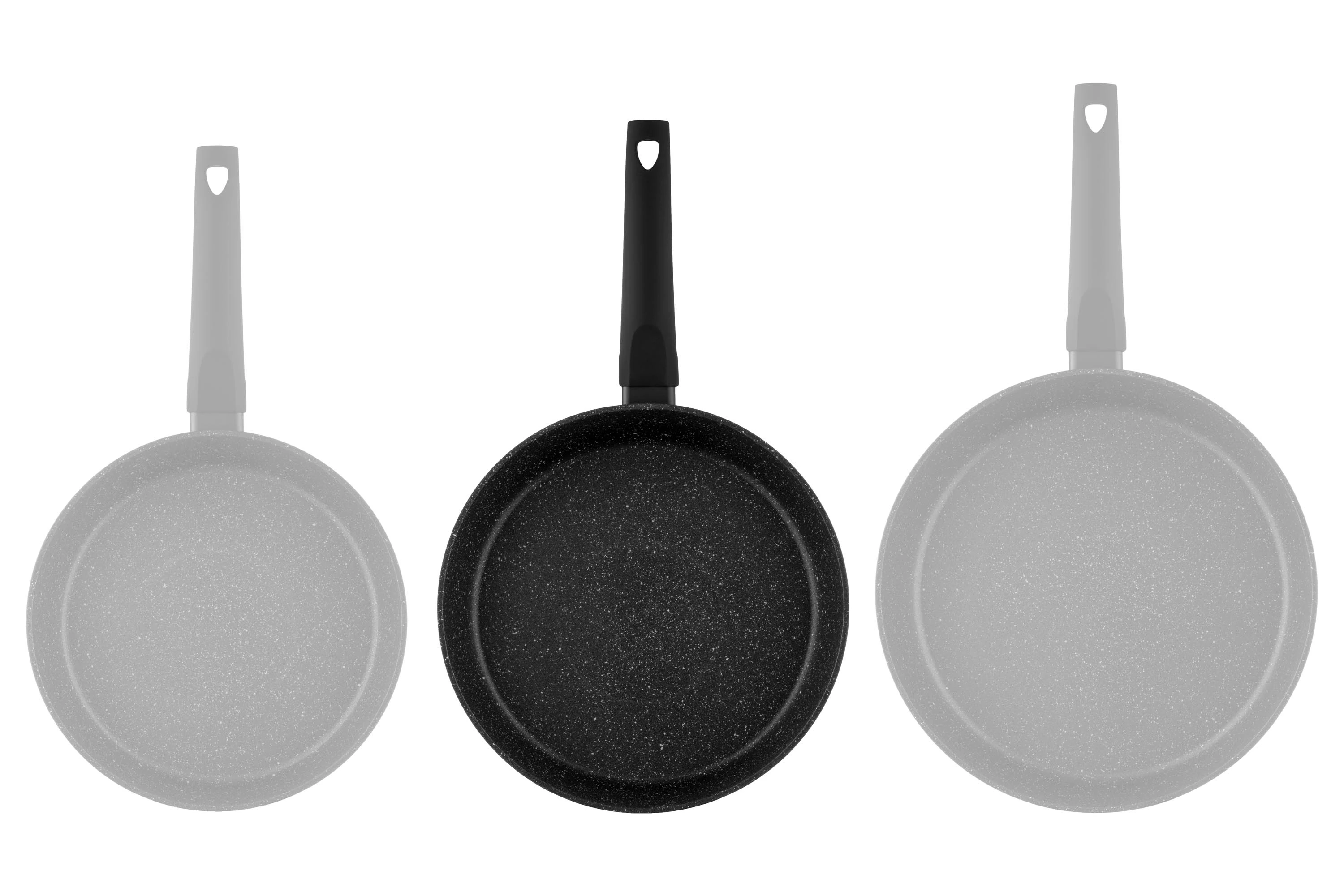 Сковороду виготовлено з кованого алюмінію, її діаметр – 26 см. За висоти 7 см товщина стінок становить 2,6/4 мм, а дна – 2,6 мм. Внутрішня поверхня має тришарове протипригарне покриття PFLUON, а бакелітове руків’я – soft-touch. З огляду на це виріб не рекомендовано мити в посудомийній машині.