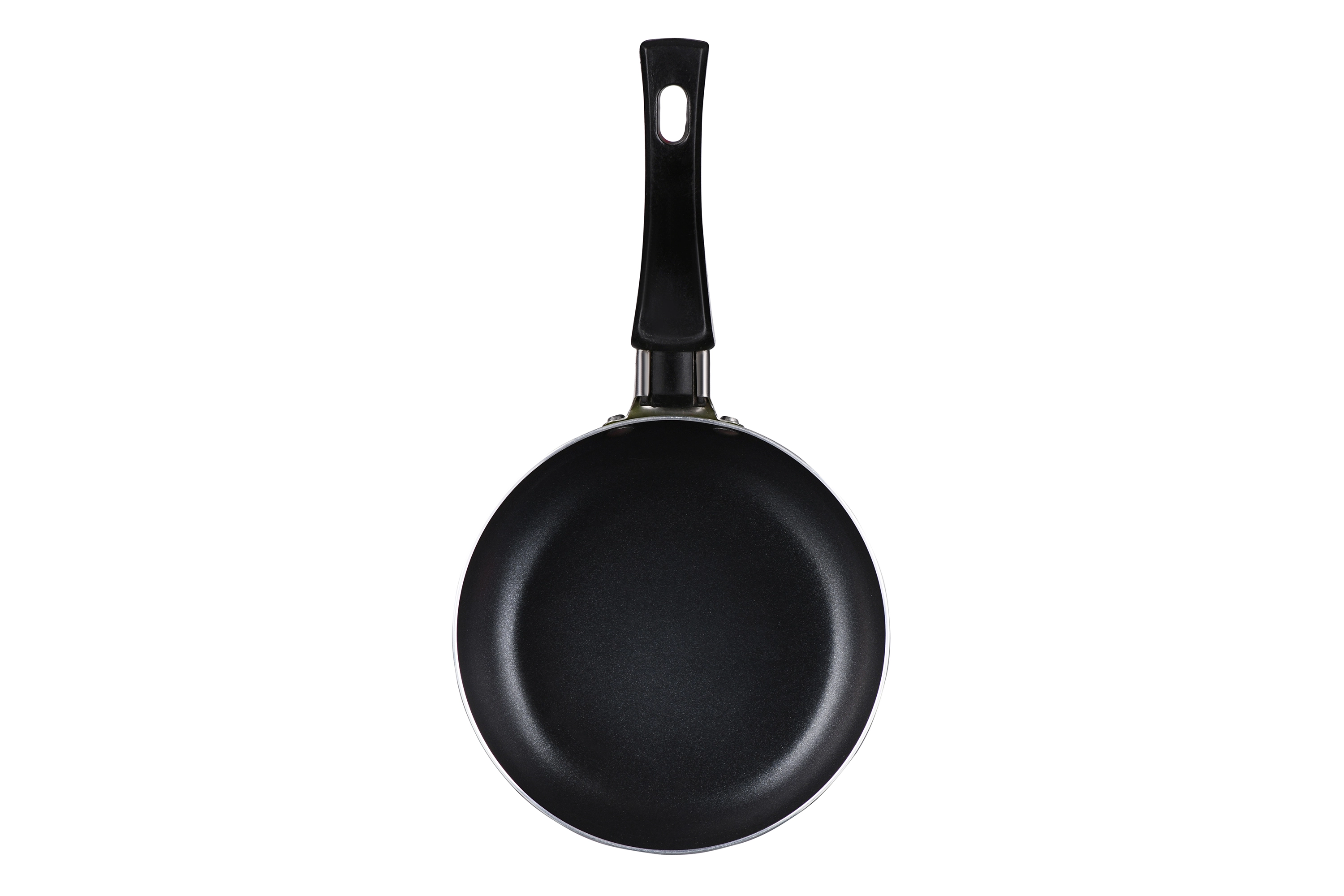 Компактну сковороду діаметром 14 см виготовлено з кованого алюмінію і призначено для використання на газових, електричних, склокерамічних та галогенних плитах. Сковорода червоного кольору. Має антипригарне покриття та зручну бакелітову ручку. Висота – 38 мм, товщина дна і стінок – 1,8 мм.