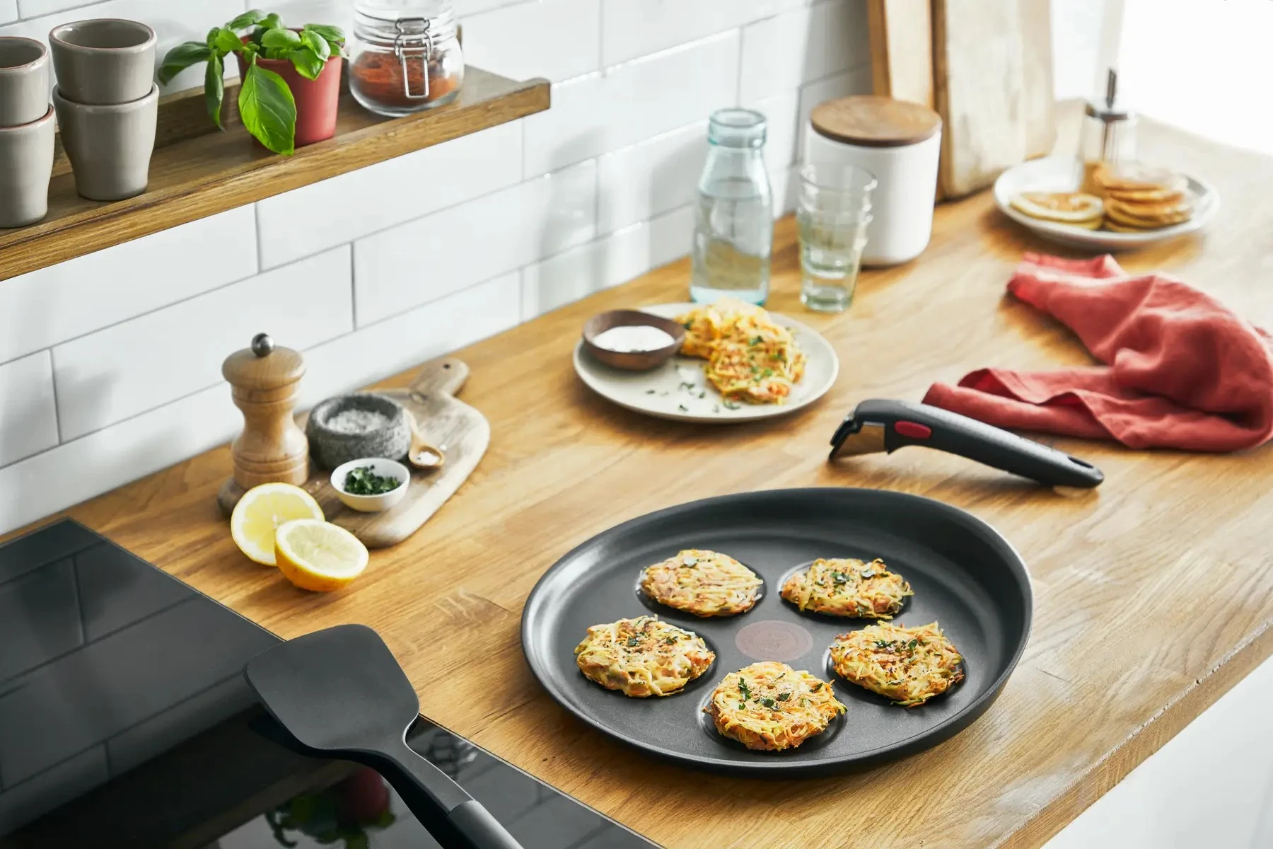 Сковорода для оладок Tefal Ingenio Unlimited – ідеальний вибір для створення смачних і рівномірно приготованих страв. Оснащена антипригарним покриттям Titanium Anti-Scratch, вона забезпечує надзвичайну довговічність і легке очищення. Компактна конструкція Ingenio дозволяє використовувати сковороду на плитах різного типу та легко зберігати її завдяки знімній ручці (продається окремо). Ідеальний аксесуар для швидкого та зручного приготування!