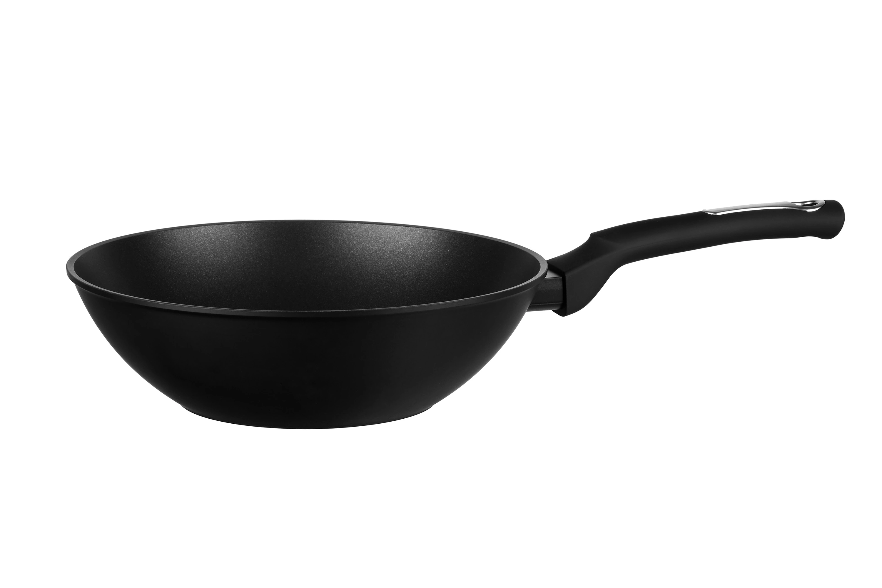 Сковорода WOK серії Gemini виготовлена з кованого алюмінію у чорному кольорі. У серії посуду Gemini використовується антипригарне покриття Xylan Plus 2. Ручка виготовлена з бакеліта з Soft-touch покриттям. Сковорода сумісна з усіма видами плит, включаючи індукційну.
