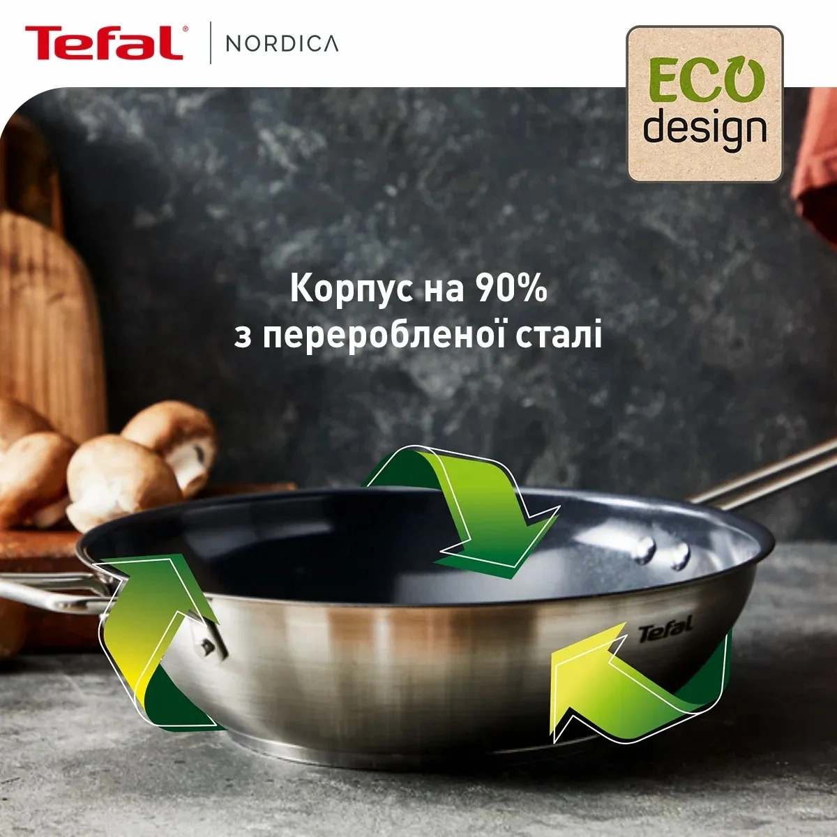 Сковорода ВОК Tefal Nordica, 28см, нержавіюча сталь