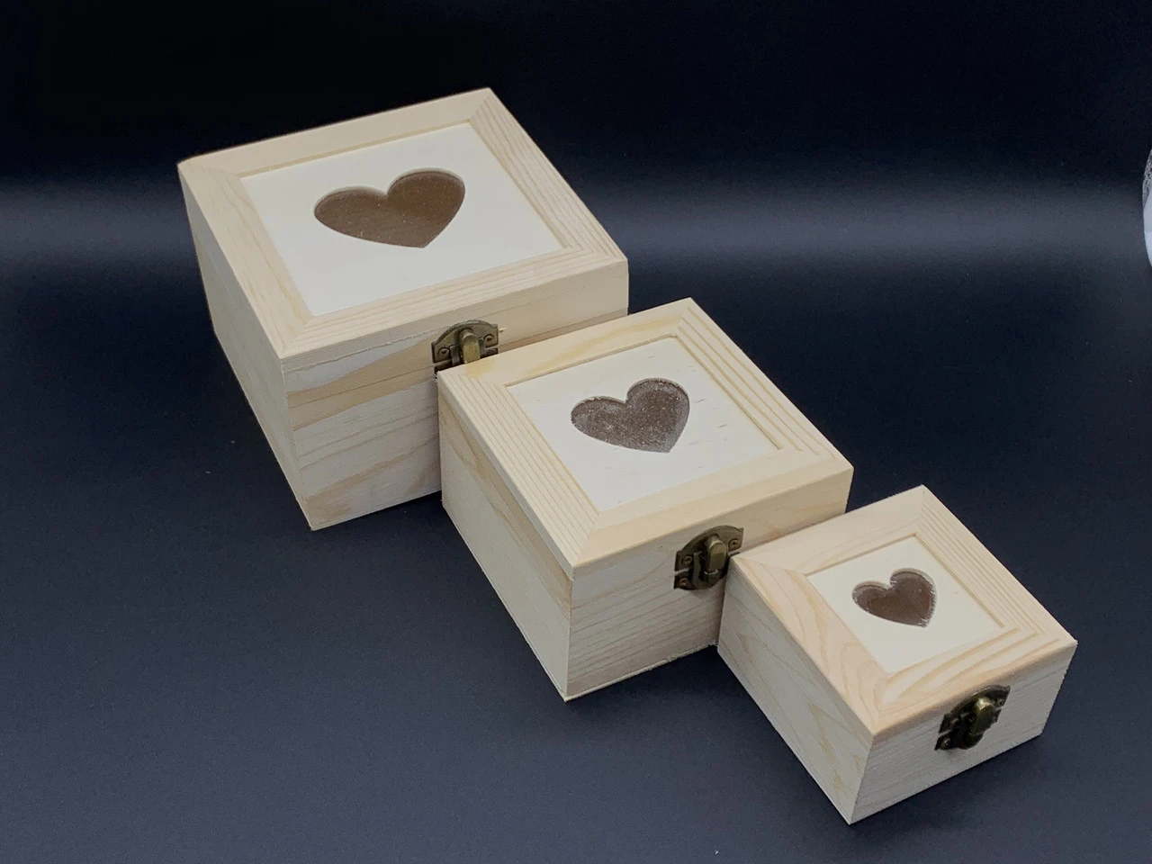 Шкатулка декоративная из фанеры, под декупаж, «Сердце», 14,5х14,5х9,5 см, 3шт, Цвет «белый»