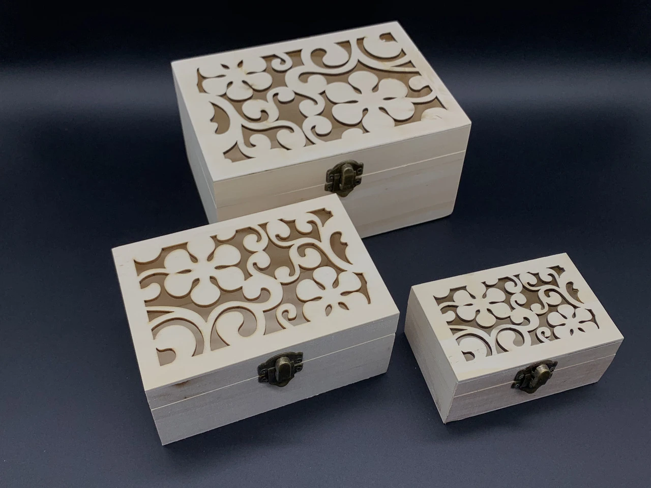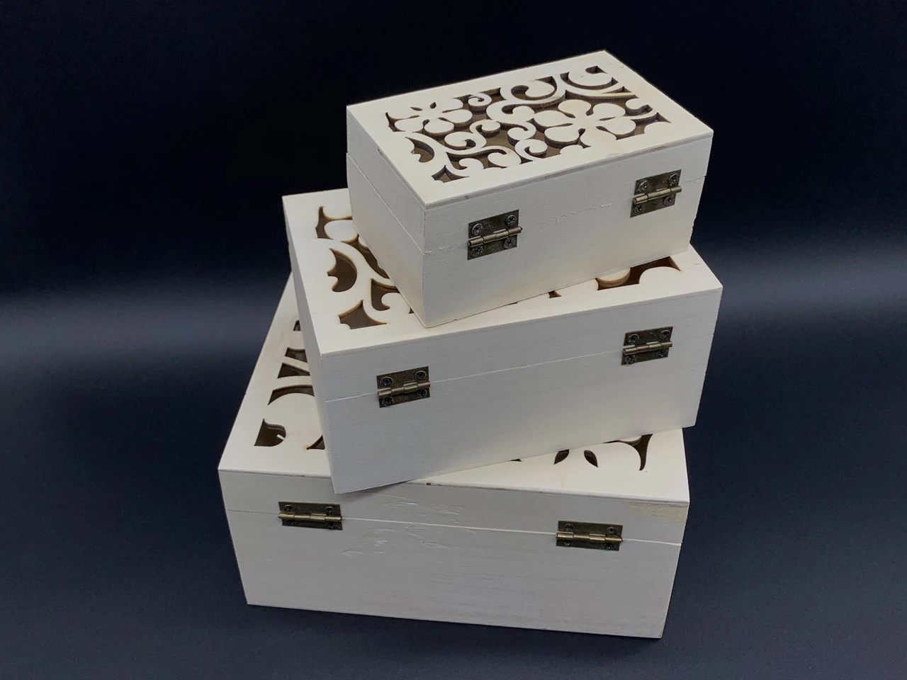 Шкатулка декоративная из фанеры с резьбой, под декупаж, 17,5х13х9см, 3шт, Цвет «белый»