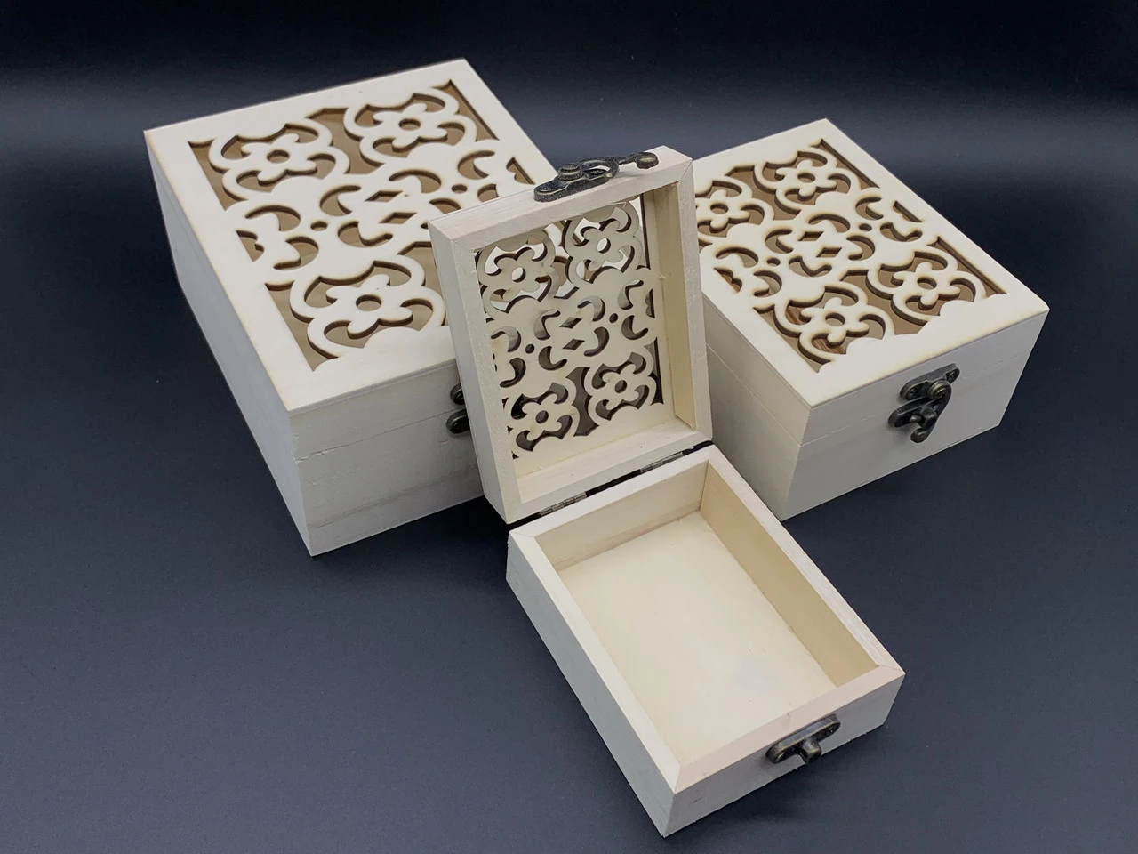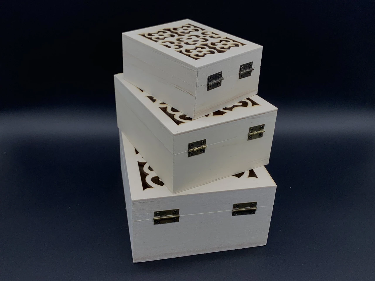 Шкатулка декоративная из фанеры с резьбой, под декупаж, 17х14х8см, 3шт, Цвет «белый»
