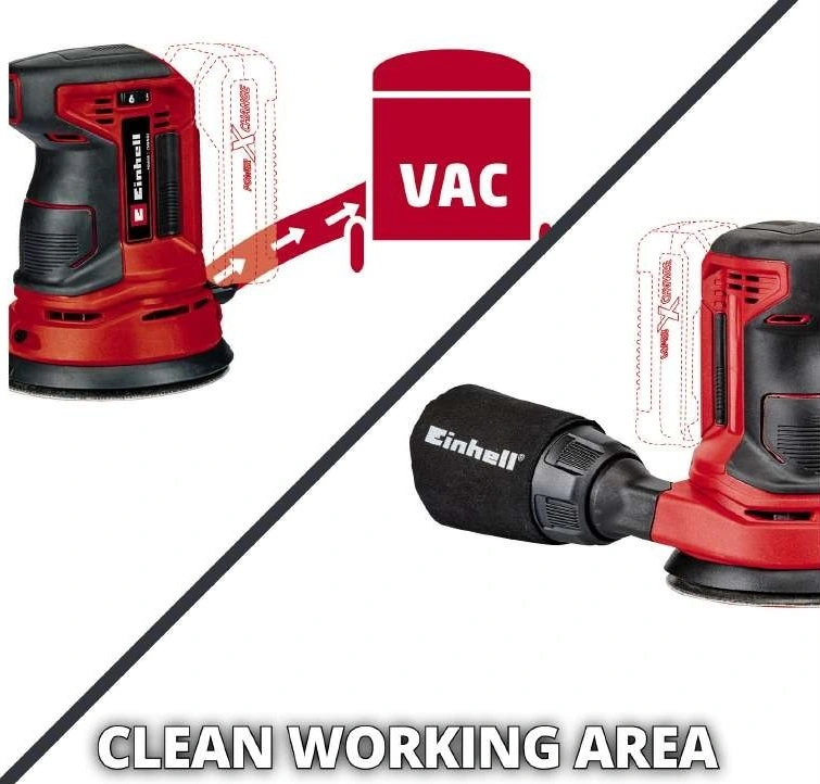 Акумуляторна ексцентрикова шліфувальна машина Einhell TE-RS 18 Li Kit являє собою високоякісний, потужний інструмент, який є відмінним вибором для шліфування великих поверхонь дерева, пластмаси і металу. Шліфмашина є пристроєм сімейства Einhell Power X-Change. Акумулятор і зарядний пристрій Power X-Change можуть використовуватися для всіх пристроїв сімейства Power X-Change. Завдяки електронному регулюванню швидкості, шліфувальна потужність може бути точно відрегульована для роботи з різними матеріалами.