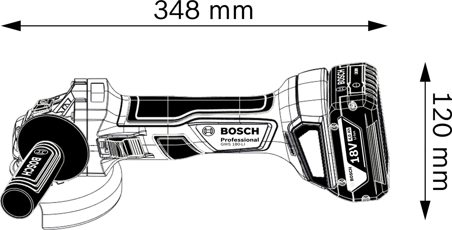 Акумуляторна кутова шліфувальна машина Bosch GWS 180-LI Professional в валізі з одним акумулятором GBA 18V 4.0Ah і зарядним пристроєм GAL 18V-40 - мобільний, універсальний для майстра інструмент, готовий відразу приступити до роботи. Надійний безщітковий двигун, потужний 18 V 4 Ah акумулятор, забезпечує високу продуктивність як при різанні, так і зачистці металу, каменю. Працює із дисками 125 мм. Нерегульована кількість обертів - 11000 об/хв.