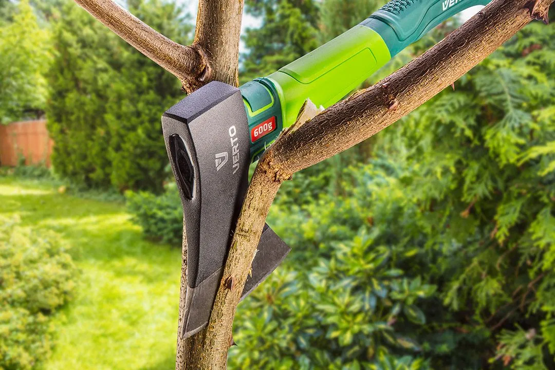 Універсальна сокира 860 г, обух 600 г, ручка з волокна, 05G201 VERTO - це інструмент, в першу чергу призначений для садових та лісогосподарських робіт. Обух вагою 600 г виготовлений із високоякісної сталі. Його відповідно профільована конструкція полегшує та прискорює роботу.