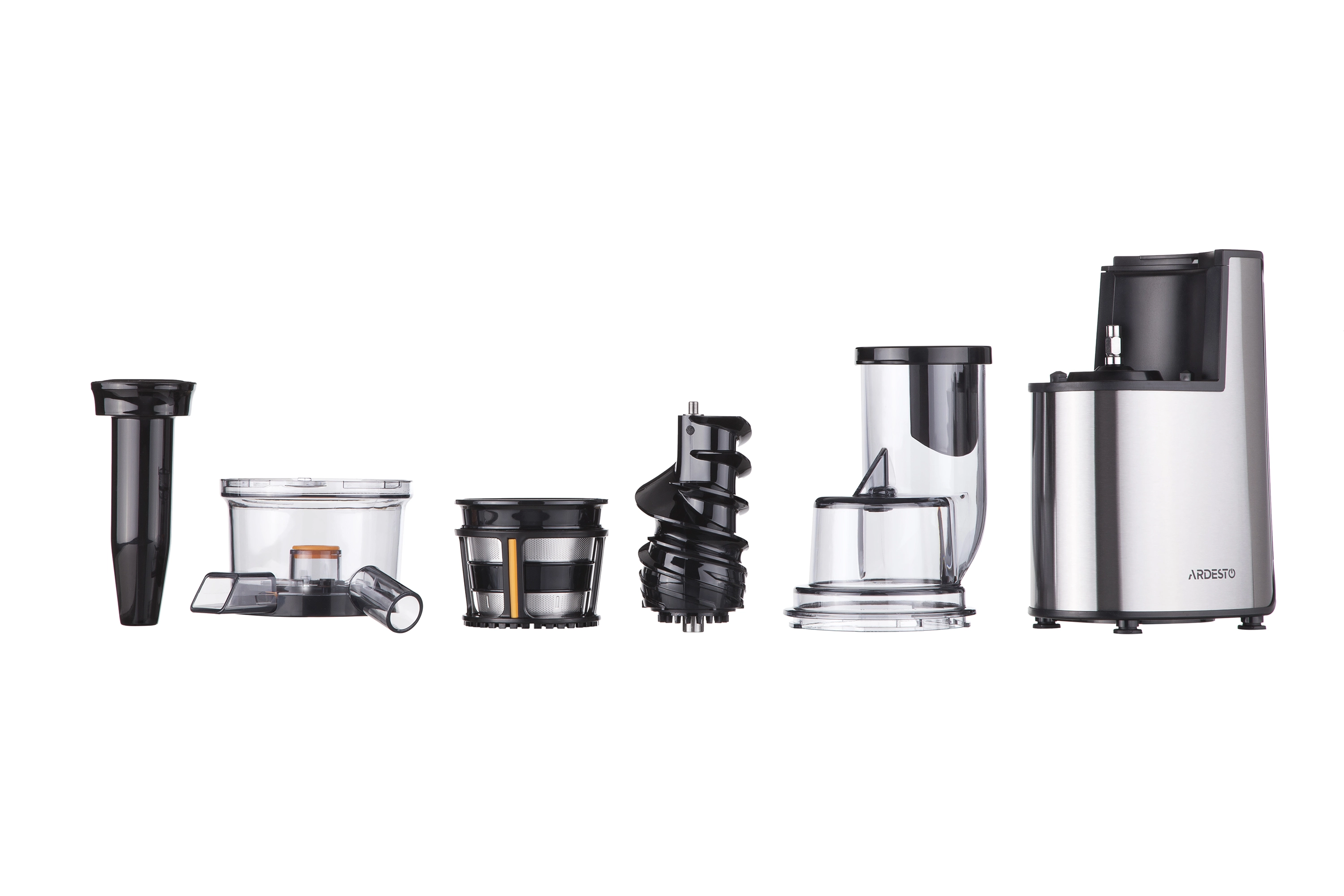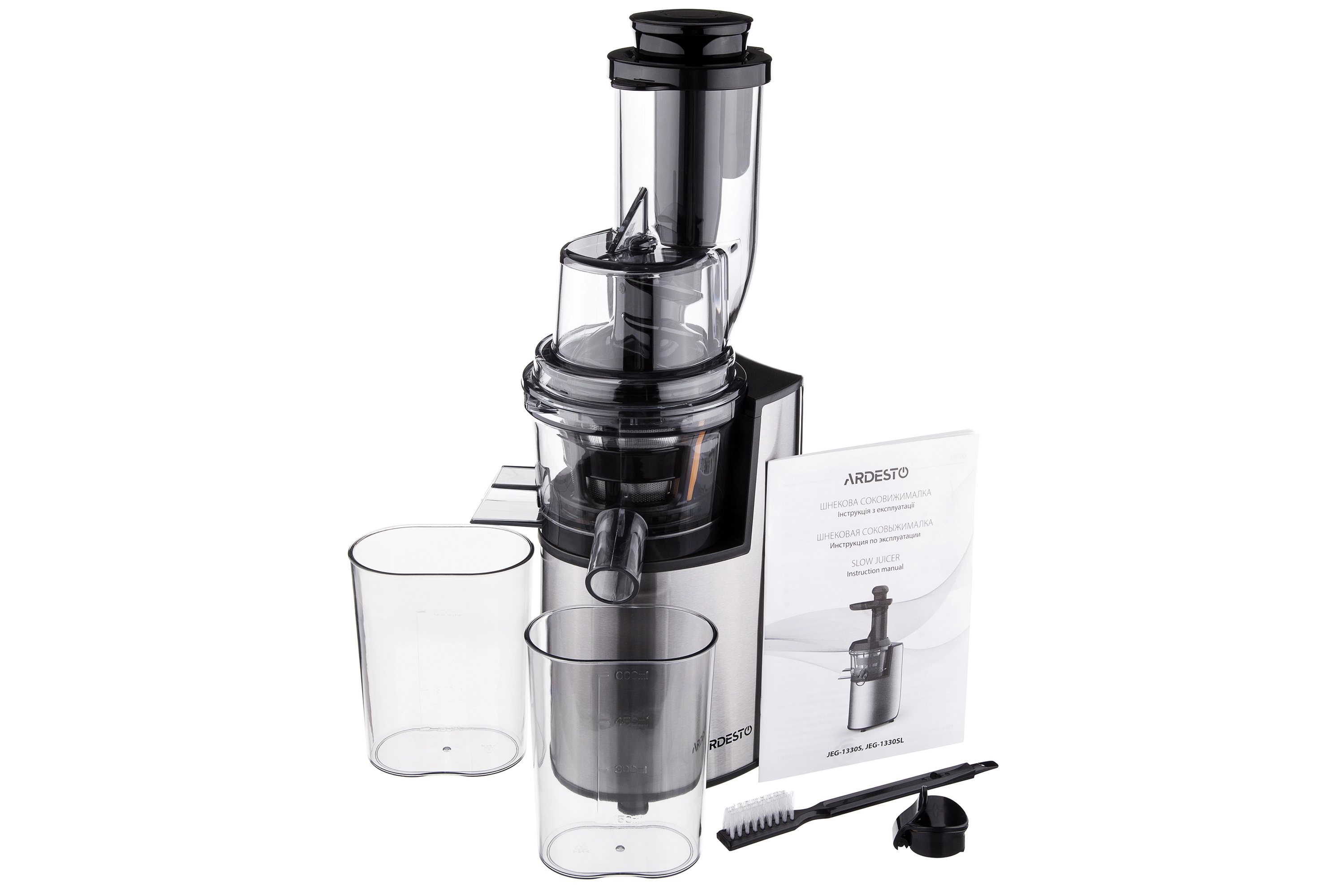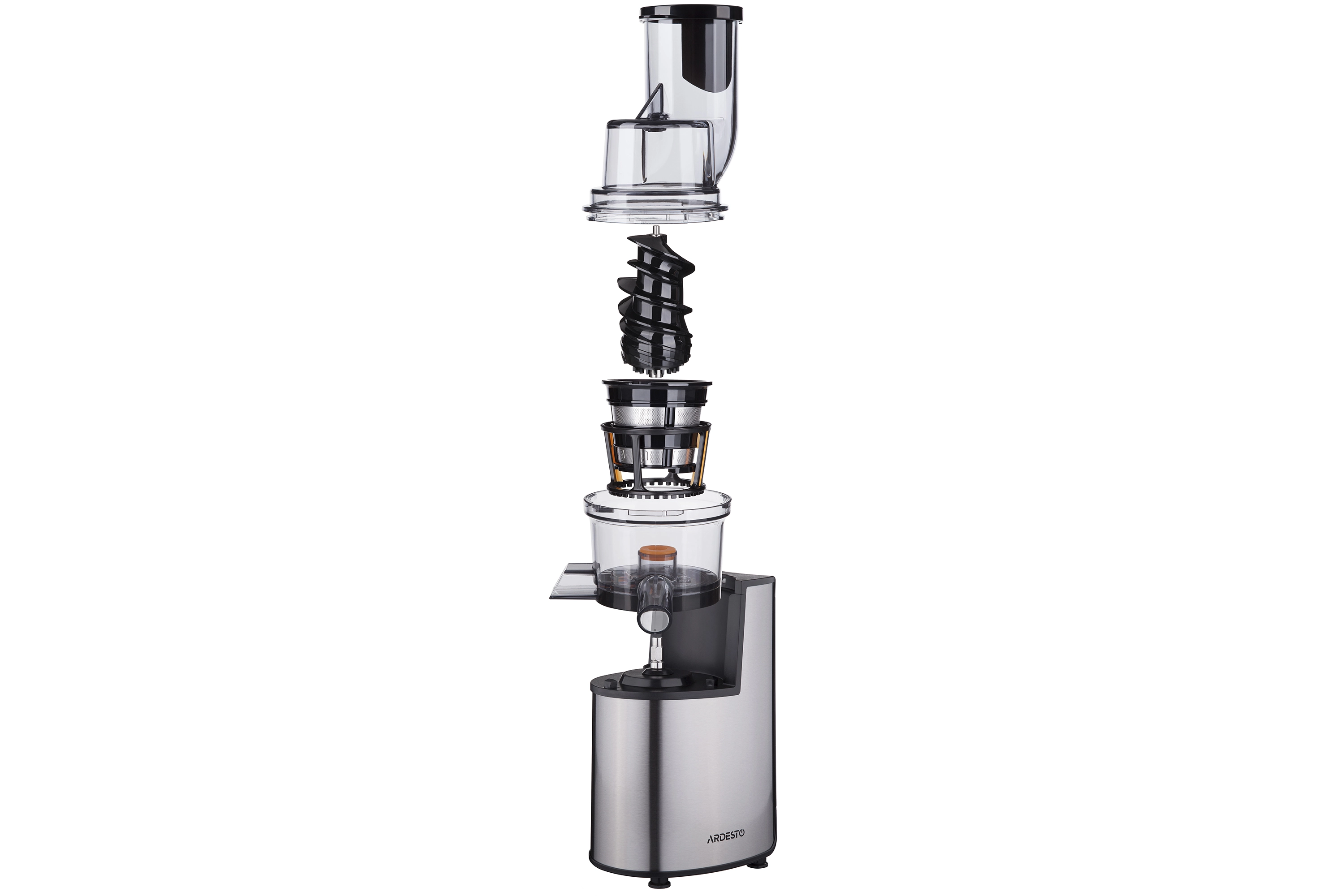 Соковитискач Ardesto шнековий 200Вт, чаша-0.6л, жмих-0.6л, пластик/метал, сріблясто-чорний