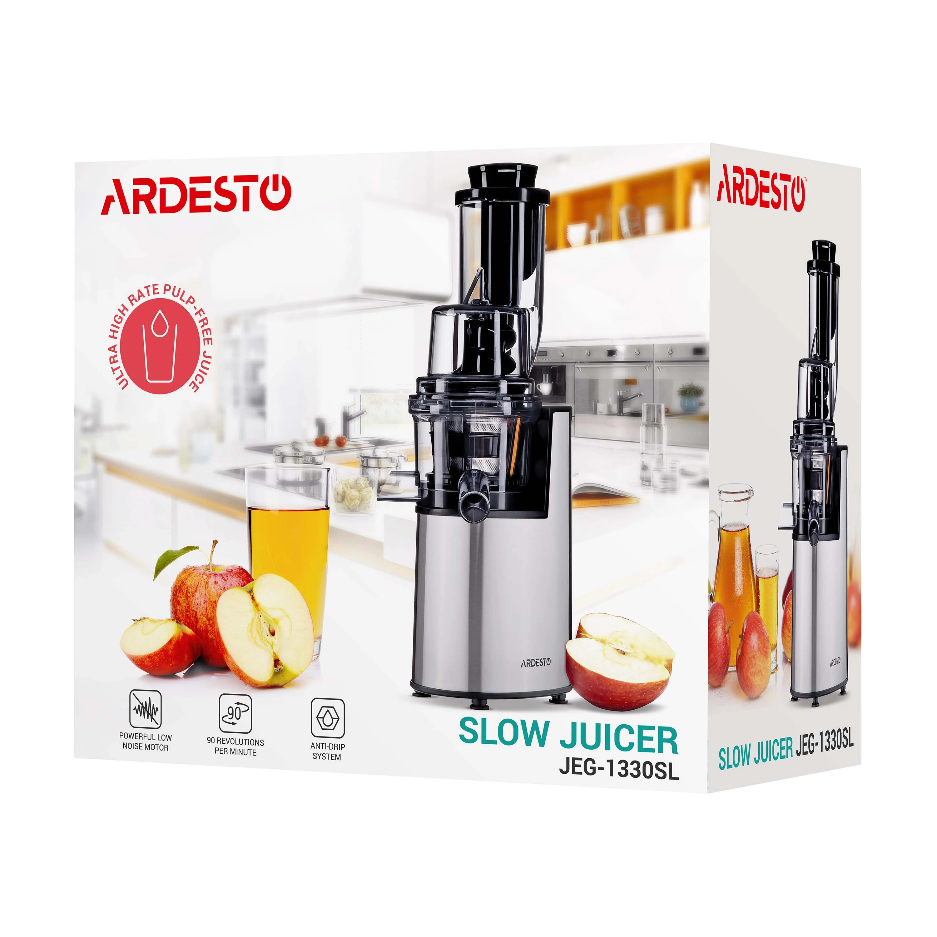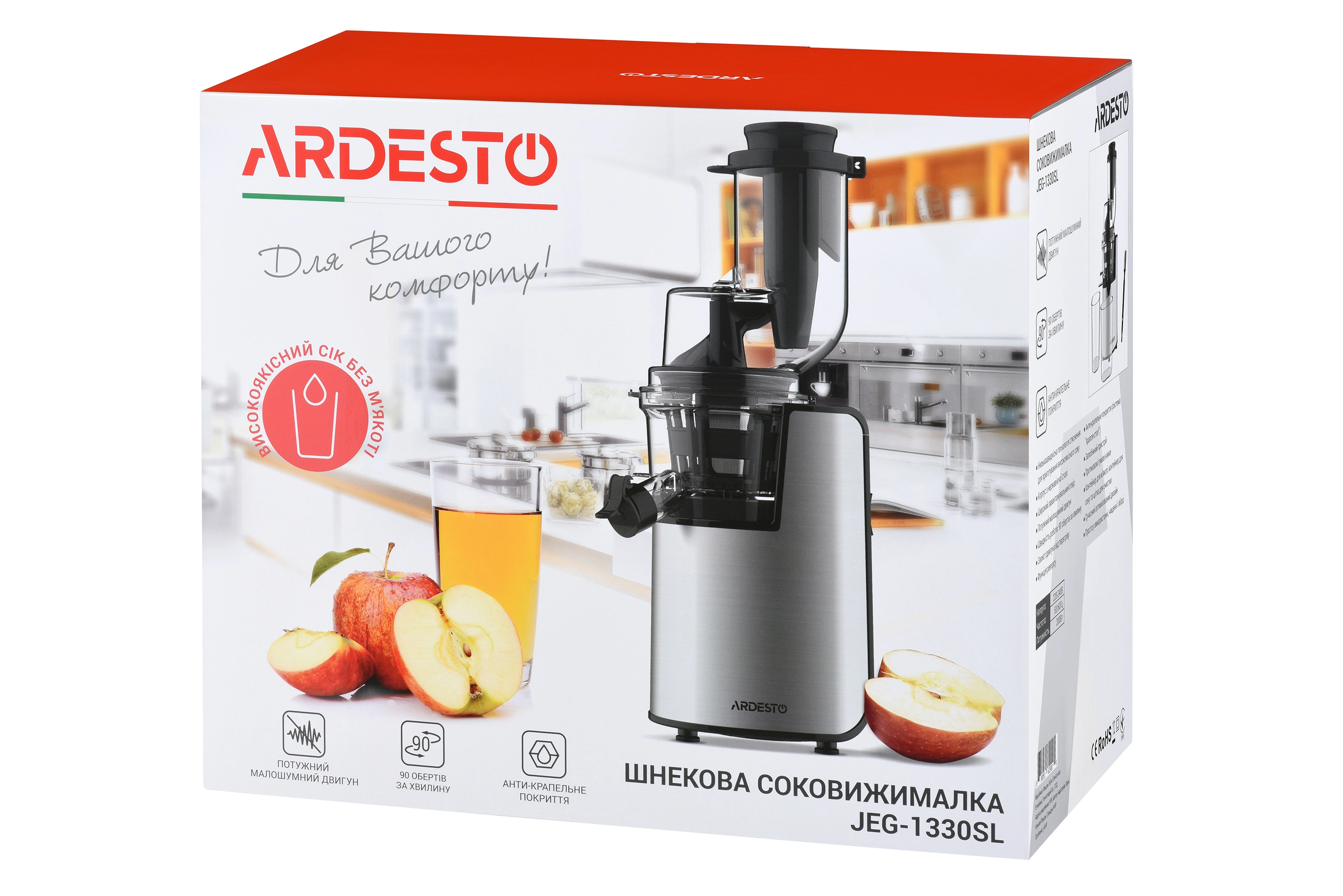 Шнековий соковитискач для приготування соку з різноманітних фруктів, овочів, ягід та навіть горіхів і зелені. Низькошвидкісна технологія витискання забезпечує максимальну екстракцію поживних та корисних речовин без окислення, з мінімумом відходів та сухою макухою. Збільшений завантажувальний отвір дозволяє завантажувати у пристрій цільні інгредієнти, тим самим заощаджуючи час приготування. Компактні розміри та продуманий дизайн сприяють простому та швидкому очищенню без зайвих зусиль.