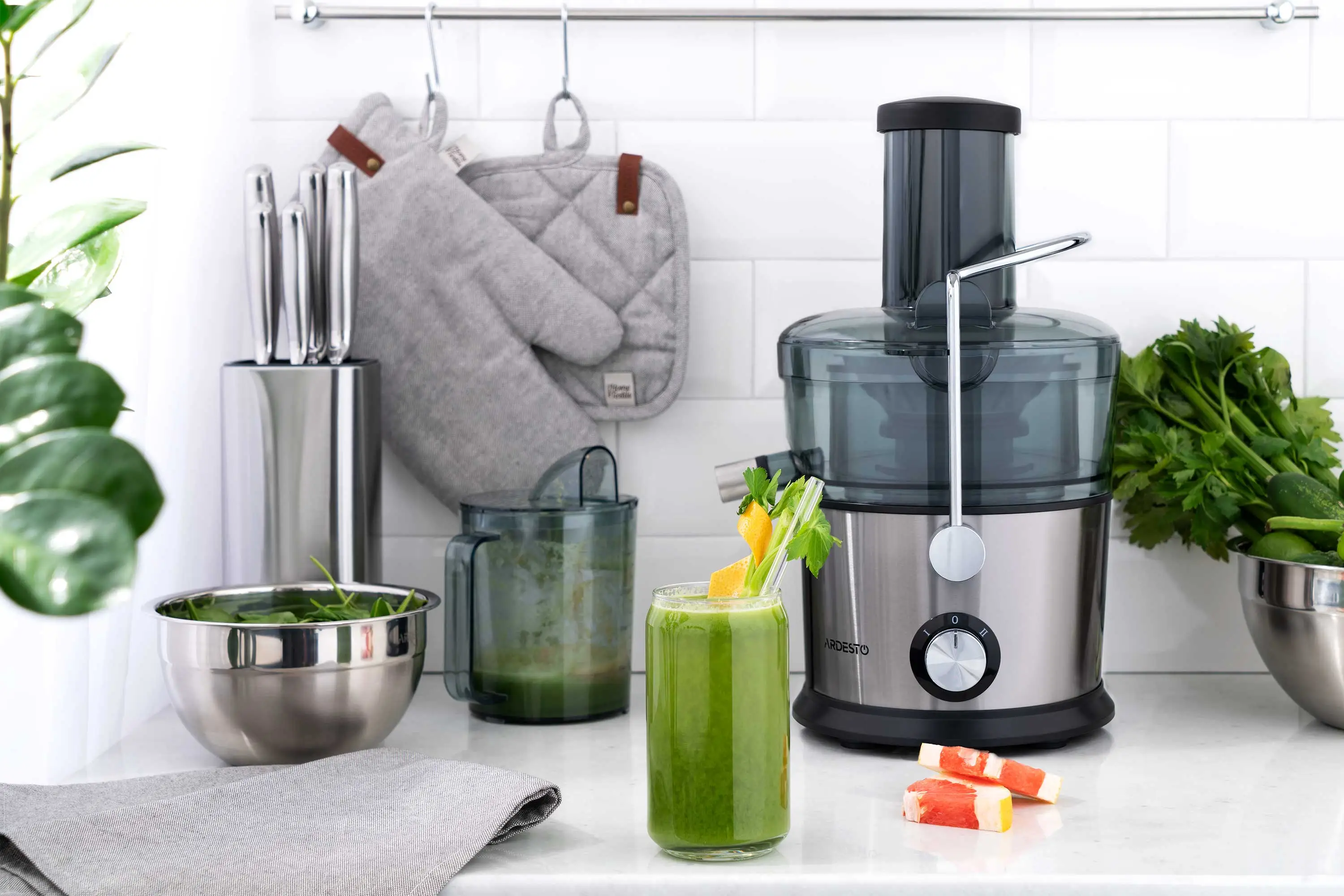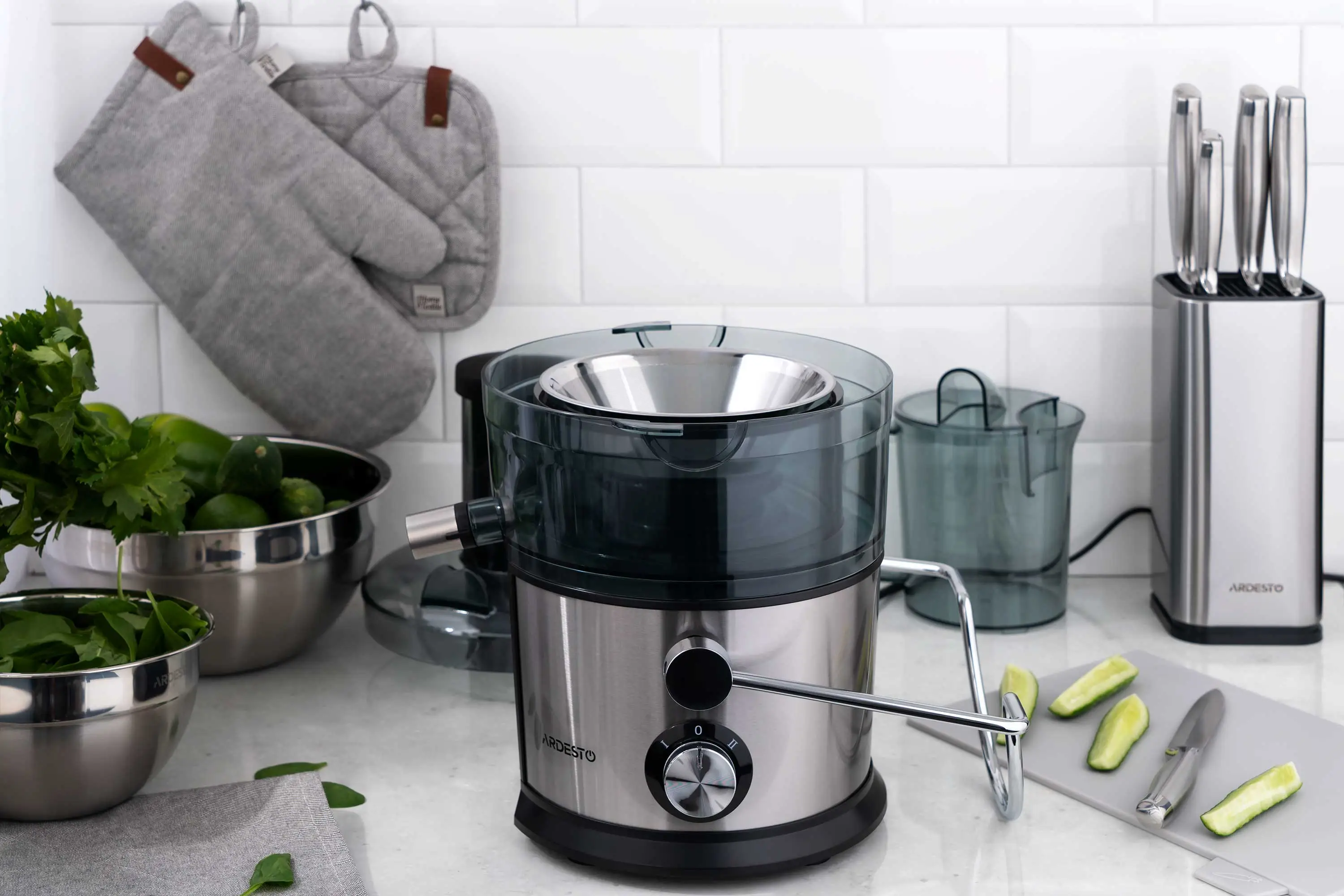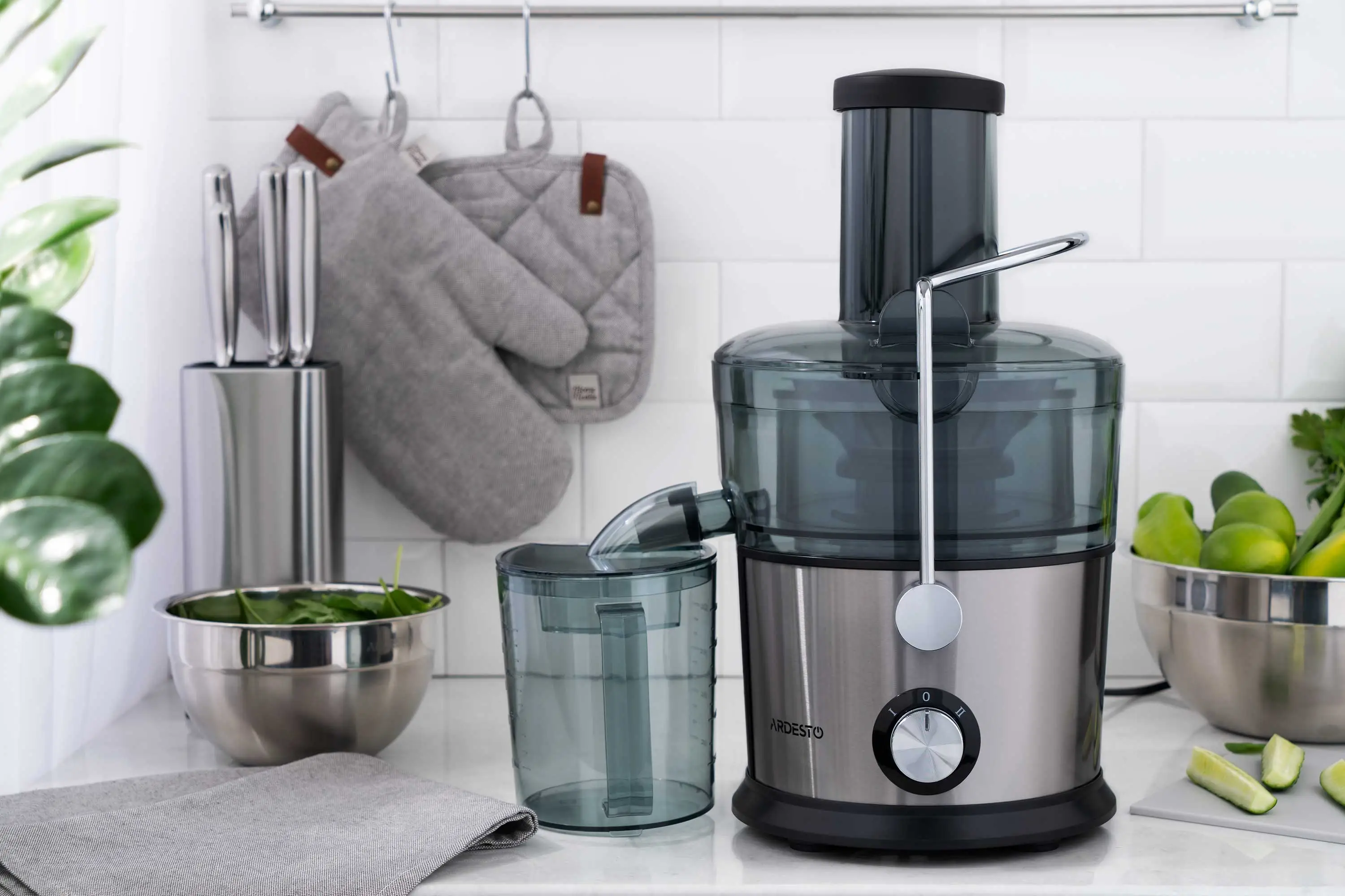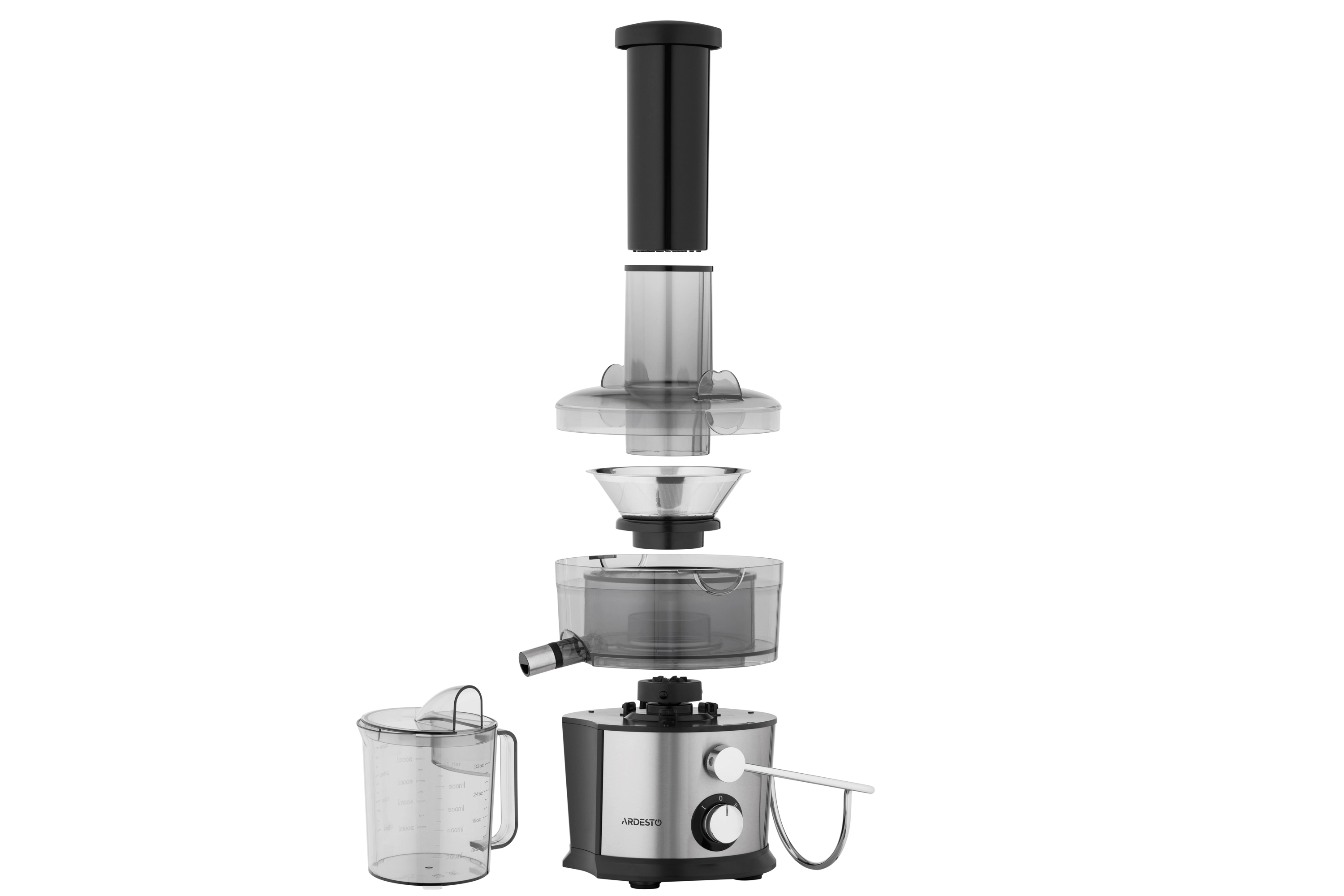 Соковитискач Ardesto відцентрований 1100Вт, чаша-1л, пластик/метал, сріблясто-чорний