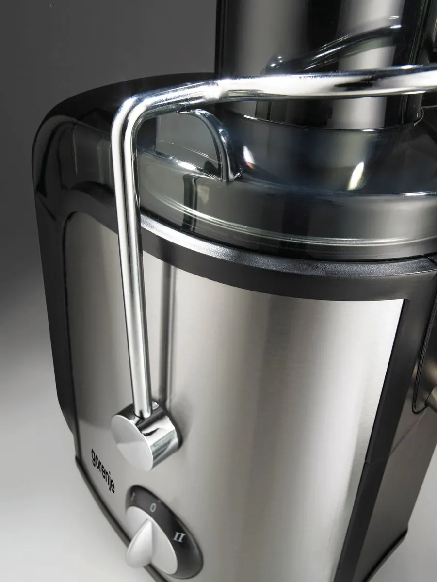 Соковитискач Gorenje JC805EII — це надійний пристрій для отримання свіжого соку з фруктів та овочів. Вона оснащена потужним двигуном потужністю 800 Вт, який працює в двох режимах швидкості. Фрукти та овочі, які проходять через жолоб діаметром 70 мм, можуть не розрізатися на частини. Отриманий сік фільтрується через міцну сітку з нержавіючої сталі та надходить у градуйовану ємність. Залишок м’якоті автоматично збирається в контейнері об’ємом 1,5 літра. Модель керується ергономічним трьохпозиційним перемикачем і захищена від неправильної збірки. Крім того, пристрій автоматично вимикається під час перегріву. Соковижималка Gorenje JC805EII стійка на будь-якій робочій поверхні завдяки вакуумним ніжкам.