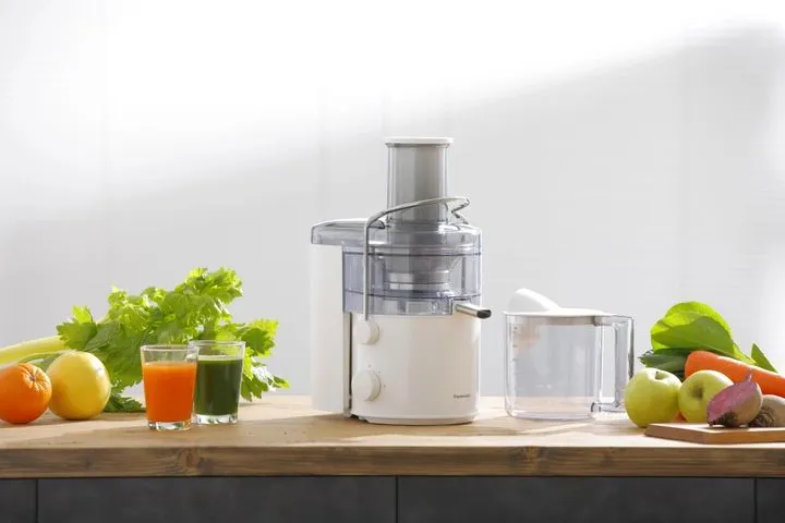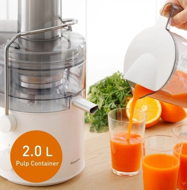 Максимальне вилучення соку за допомогою потужної нарізки. Унікальна повністю металева блешня Panasonic ефективно витягує максимум соку, в результаті чого виходить однорідний сік без м'якоті, який легко пити навіть дітям. S-подібний різак суцільнометалевої блешні міцно прорізає твердий центр плода, а ніж із малим кутом повністю витягує його. Сітчастий фільтр тонкого очищення відокремлює сік від м'якоті, тож ви завжди отримуєте напій із гладкою текстурою.
