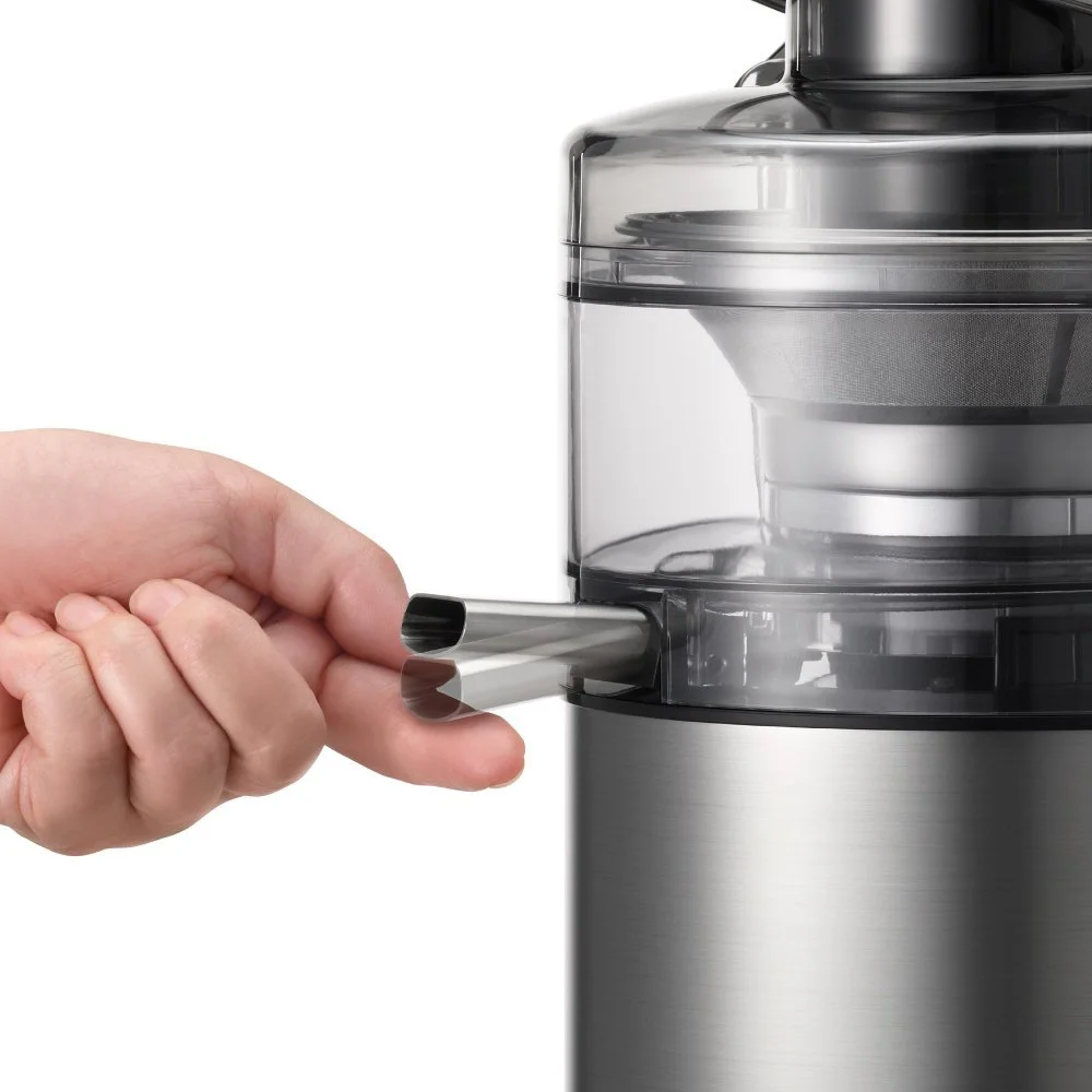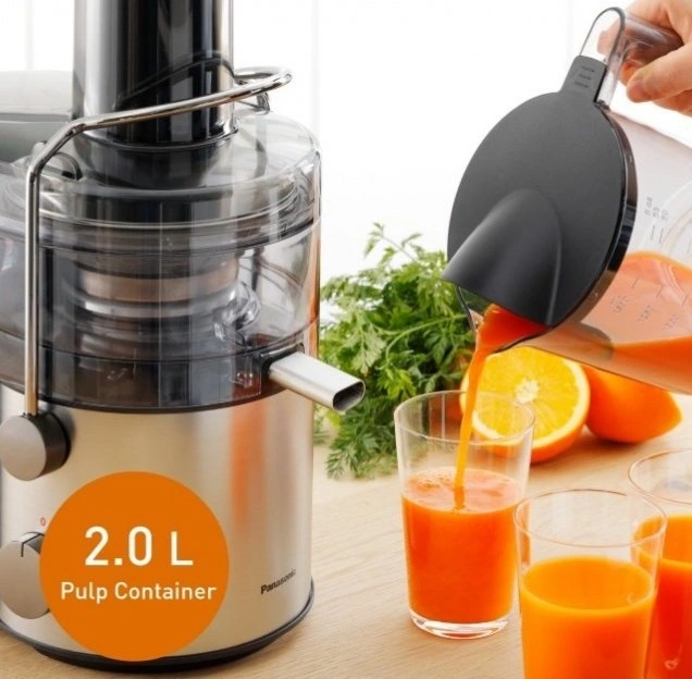 Максимальне вилучення соку за допомогою потужної нарізки. Унікальна повністю металева блешня Panasonic ефективно витягує максимум соку, в результаті чого виходить однорідний сік без м'якоті, який легко пити навіть дітям. S-подібний різак суцільнометалевої блешні міцно прорізає твердий центр плода, а ніж із малим кутом повністю витягує його. Сітчастий фільтр тонкого очищення відокремлює сік від м'якоті, тож ви завжди отримуєте напій із гладкою текстурою.