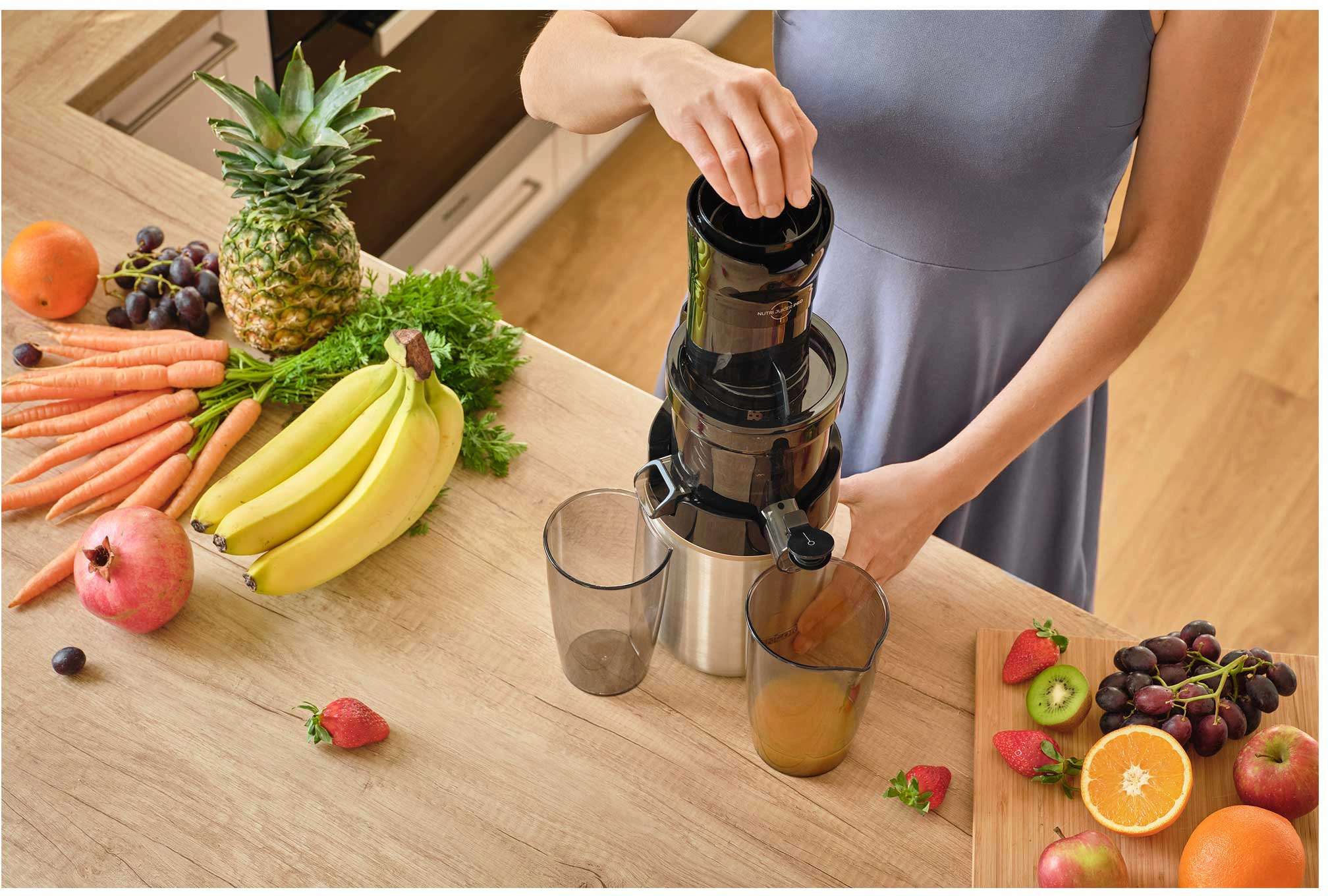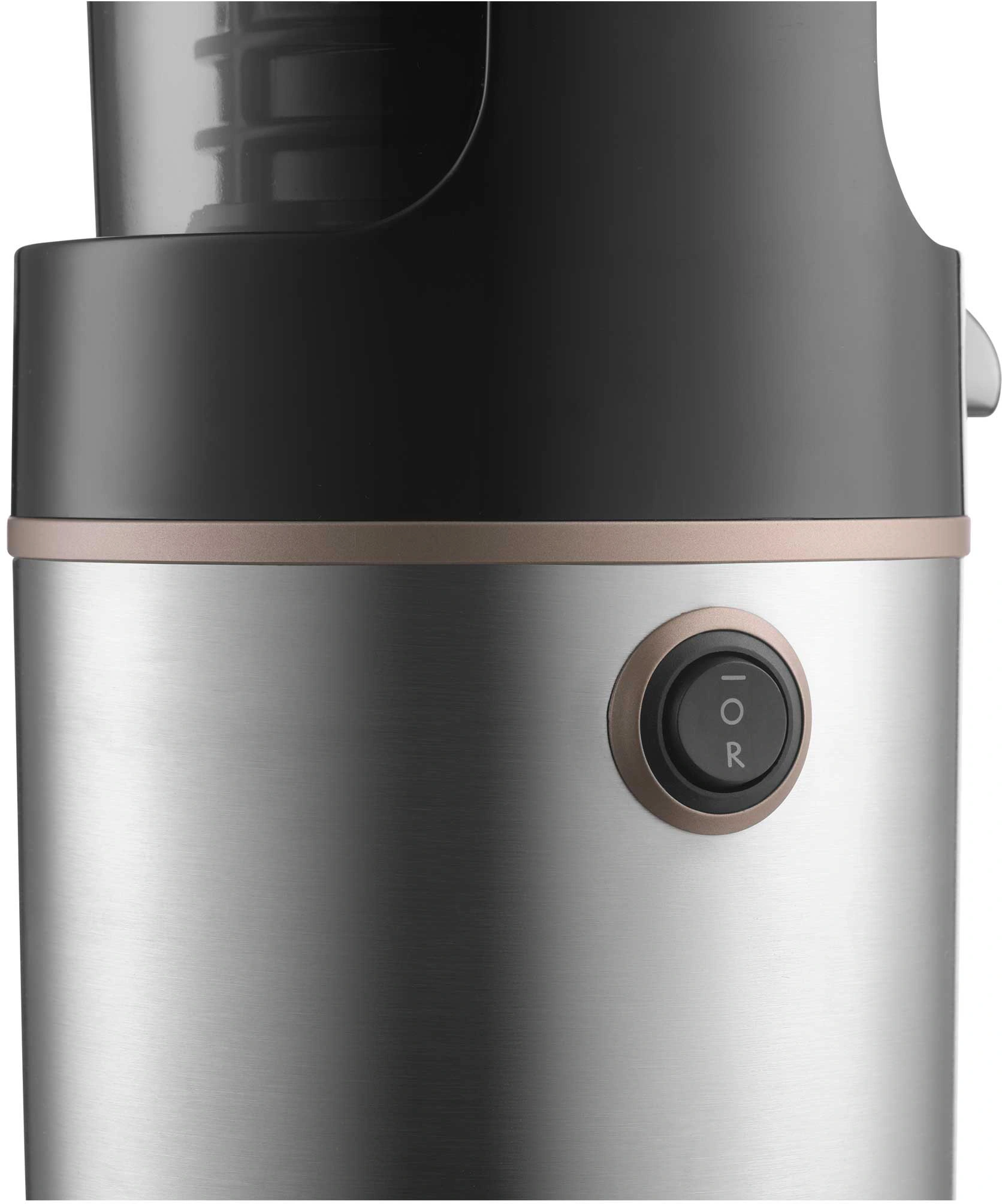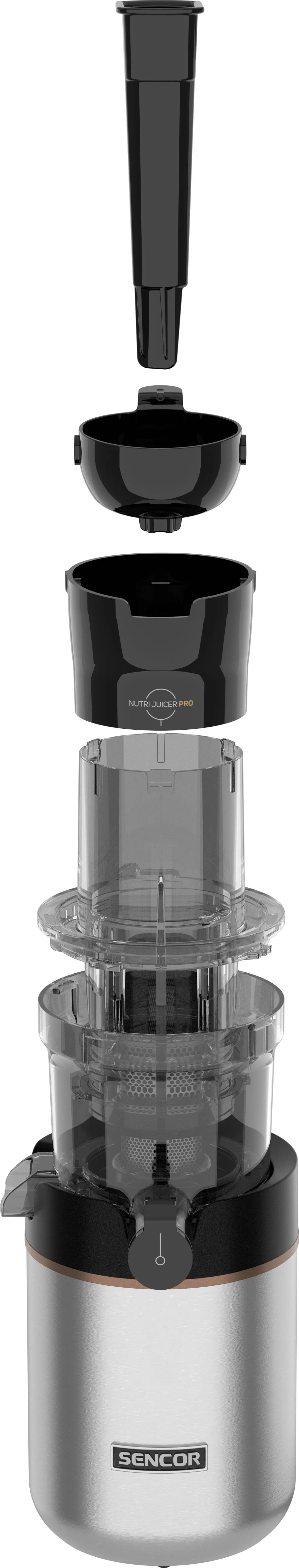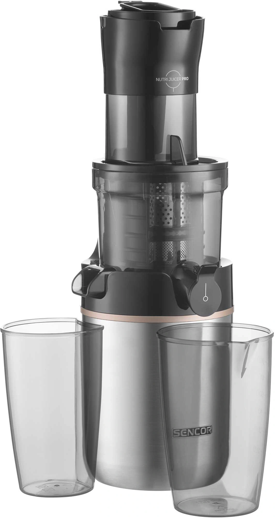 Соковитискач Sencor SSJ8050SS із широким жолобом, двошвидкісною роботою та корпусом із нержавіючої сталі забезпечує ефективне віджимання соку з високим вмістом соку (до 75%). Оснащений двигуном постійного струму, функцією реверсу, системою DripStop і комплектується ємностями для соку та м’якоті, штовхачем і щіткою для очищення.